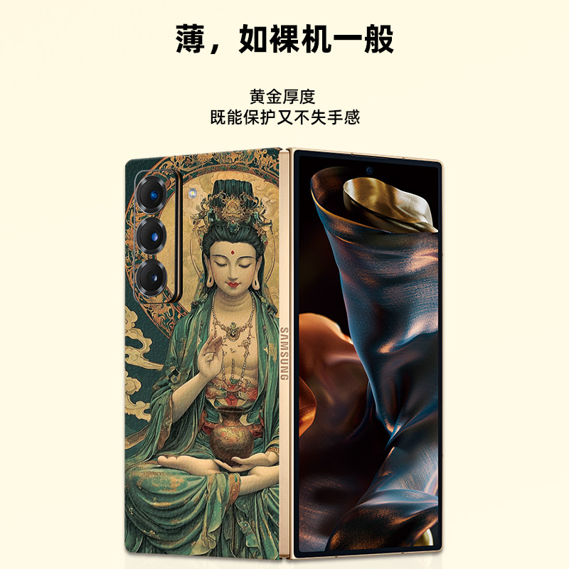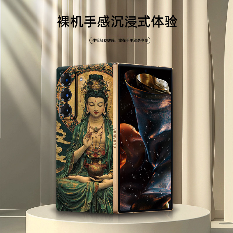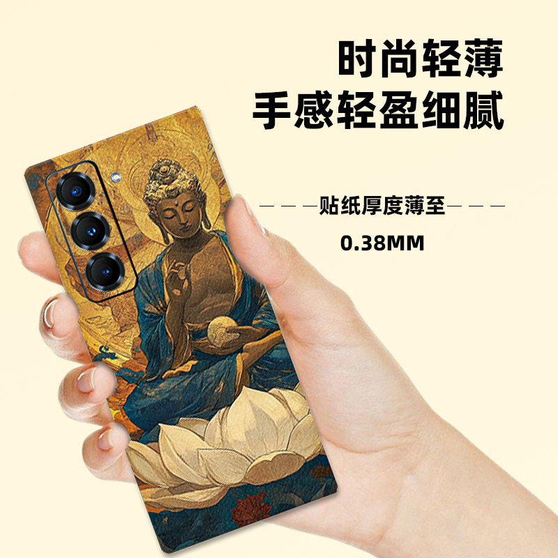 三星W26素皮背膜fold7全包后膜防摔W25后盖贴纸Fold6后壳改色膜佛像唐卡W24边框膜遮瑕fold5/4超薄中轴膜国潮