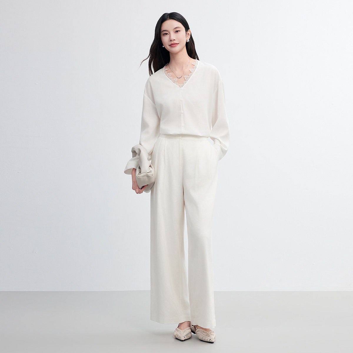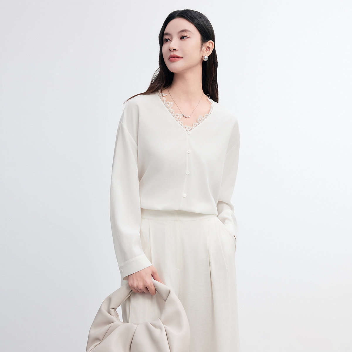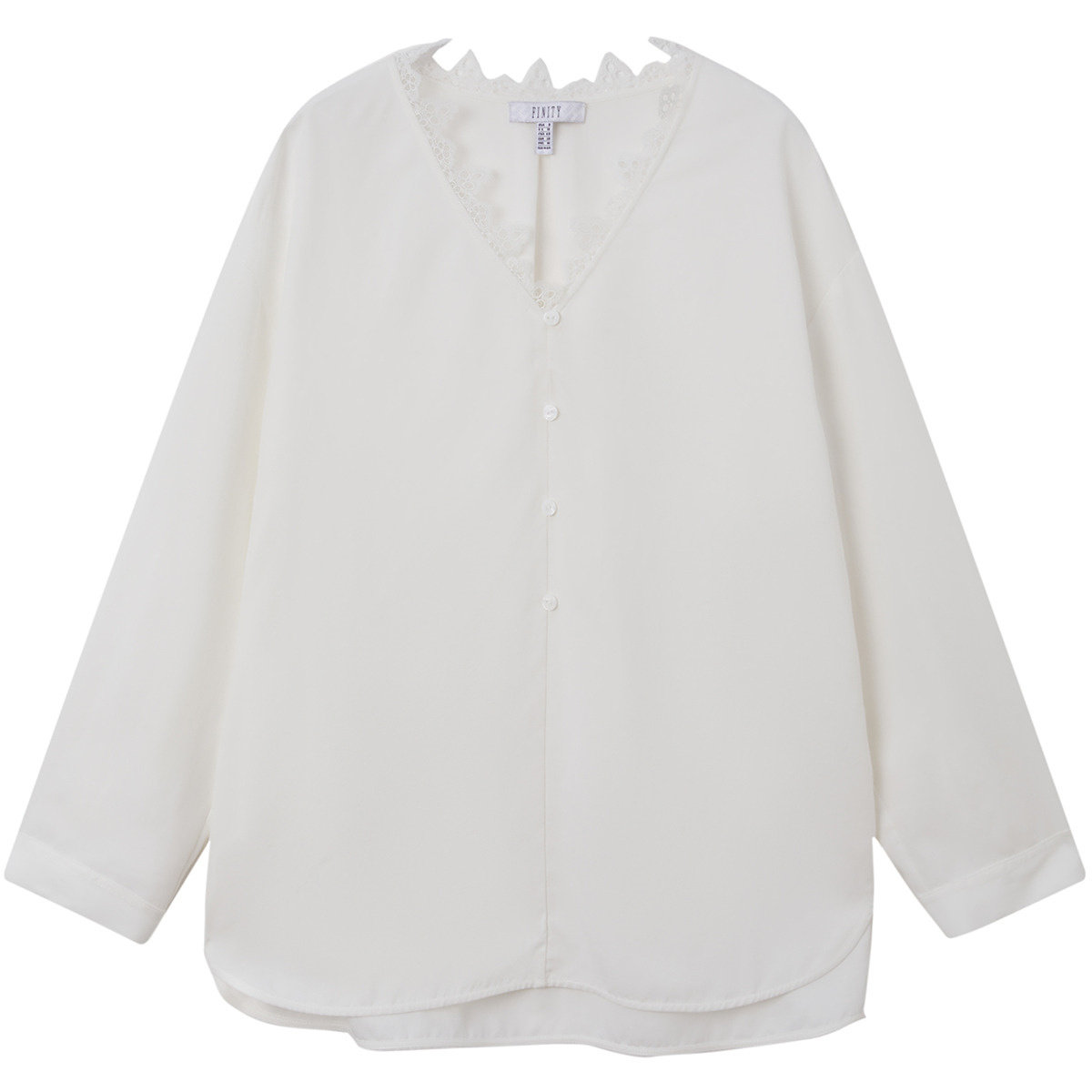 【莱赛尔纤维】FINITY菲妮迪雪纺衫2026春新款蕾丝V领宽松上衣女