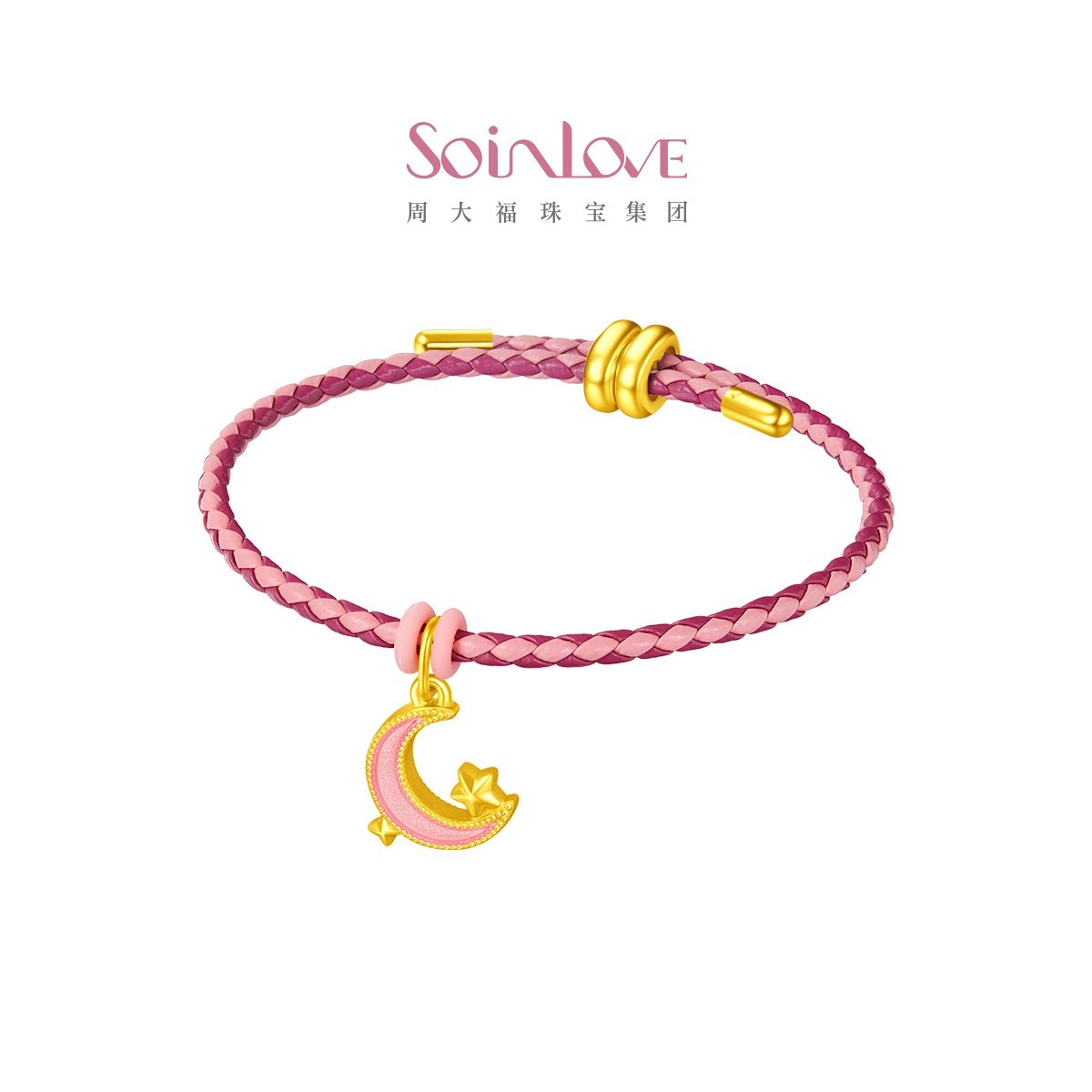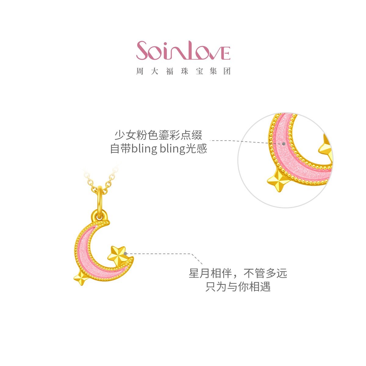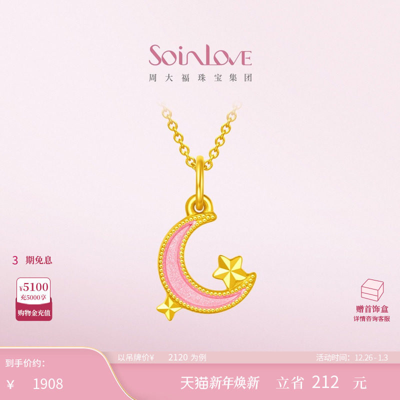 周大福SOINLOVE「仙女星」粉月星黄金吊坠女VR1330生日礼物