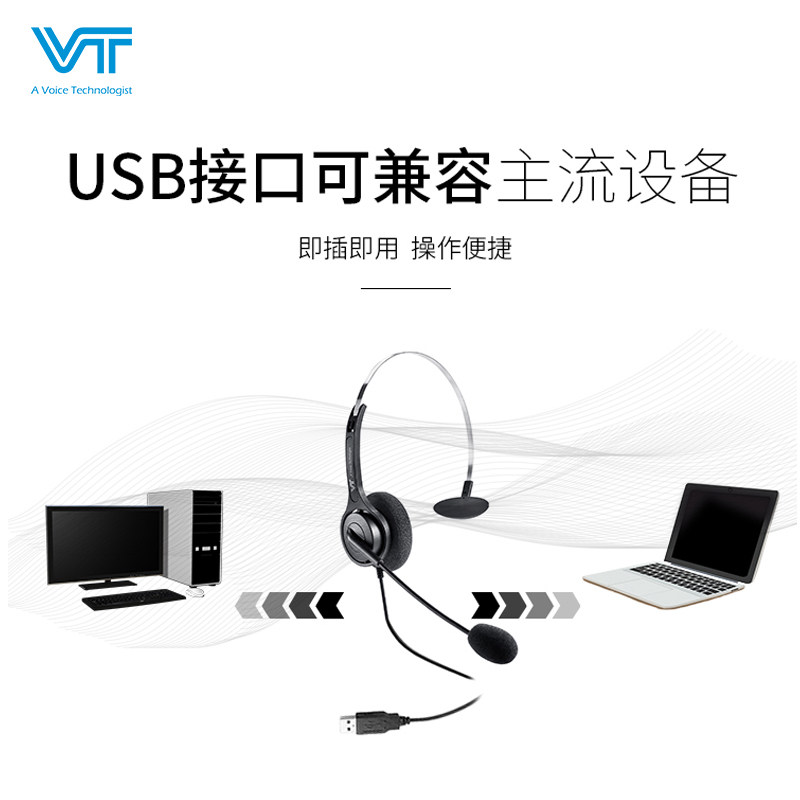 VT1500话务员专用耳机头戴式单耳客服电销耳麦座机水晶头带静音