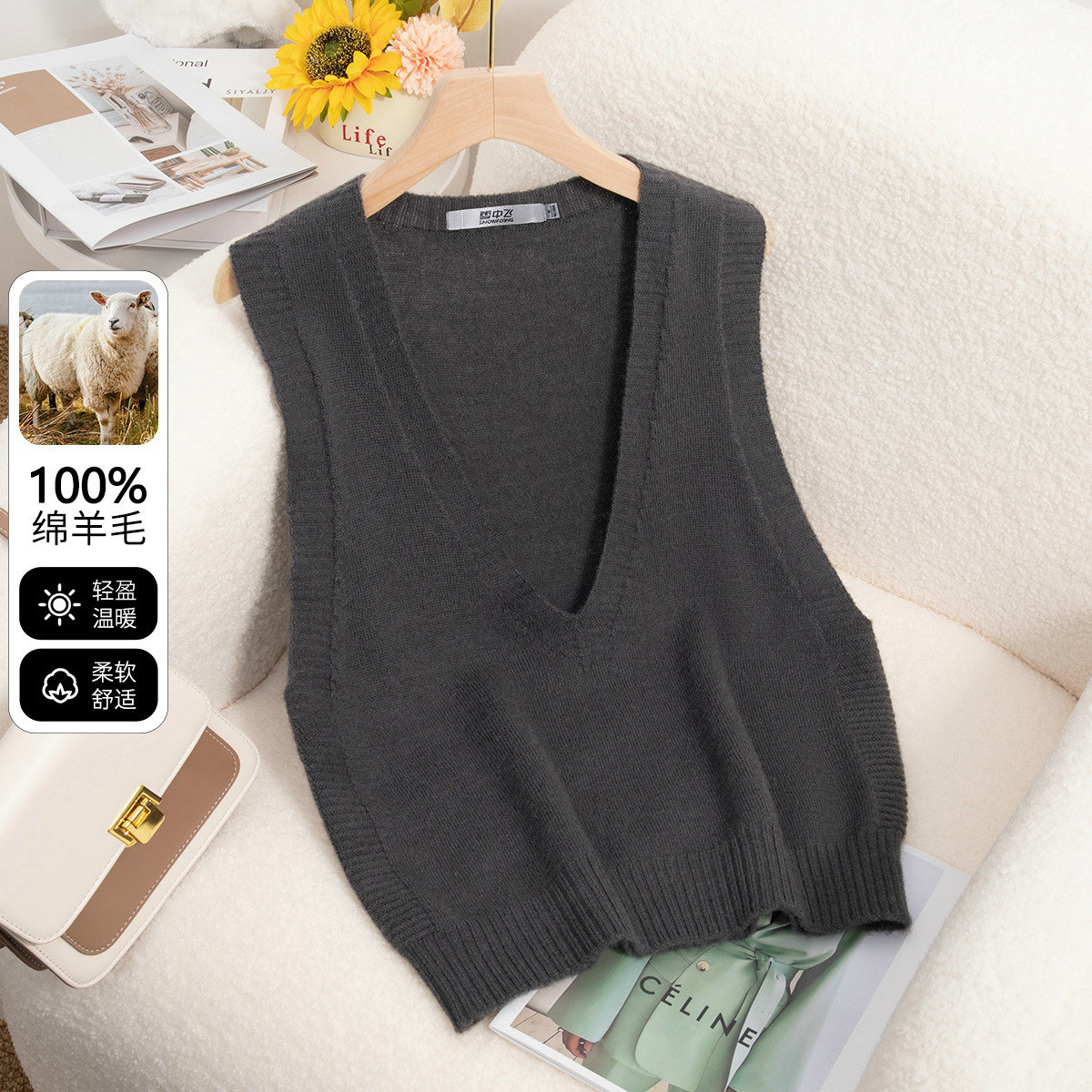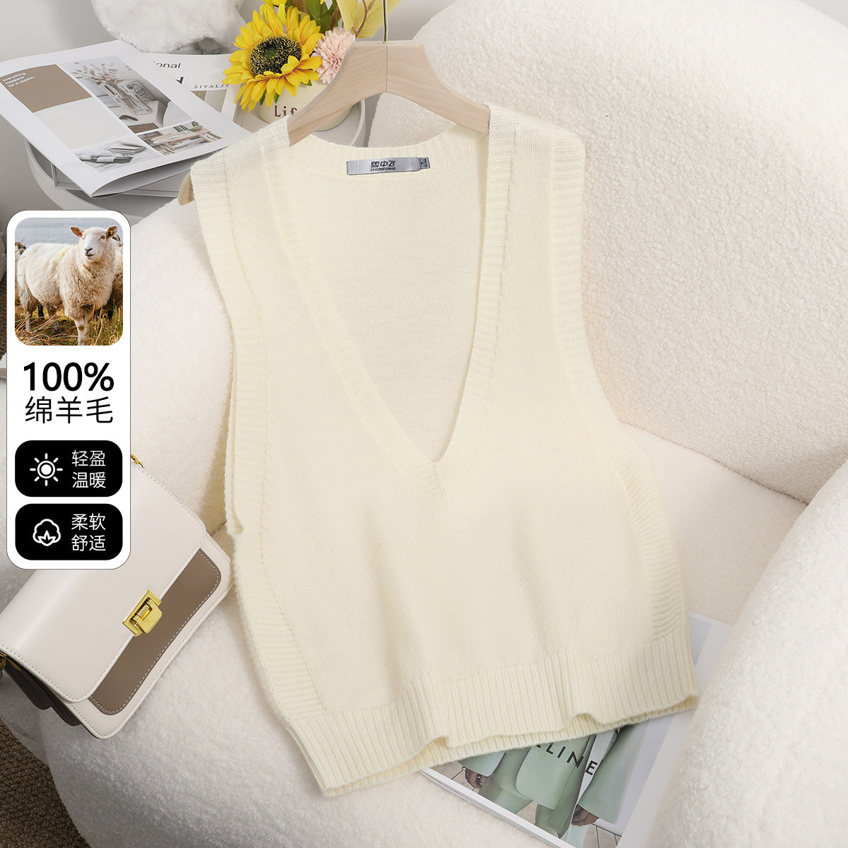 雪中飞【100%绵羊毛】秋冬内搭叠穿马甲纯色休闲百搭女士羊毛衫W