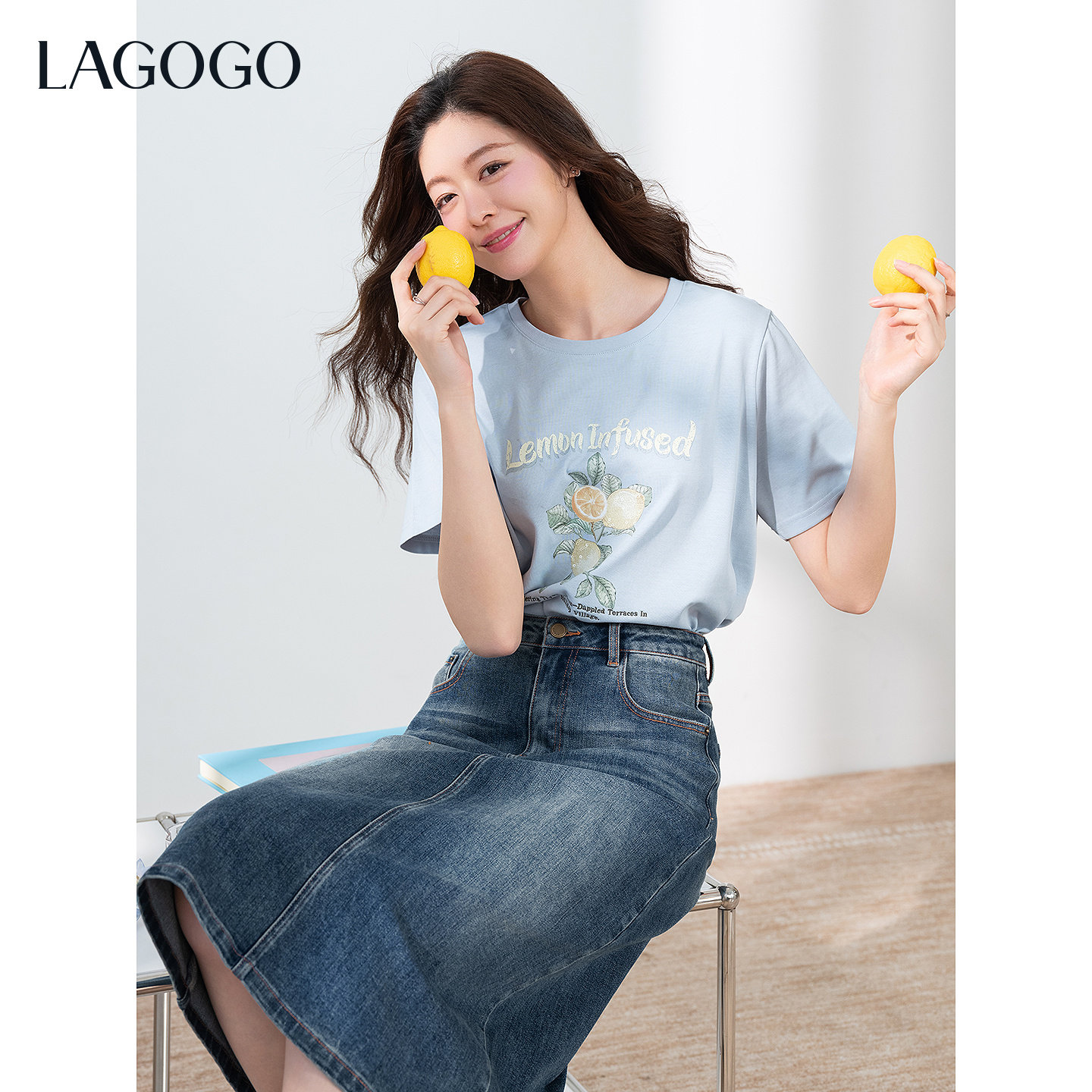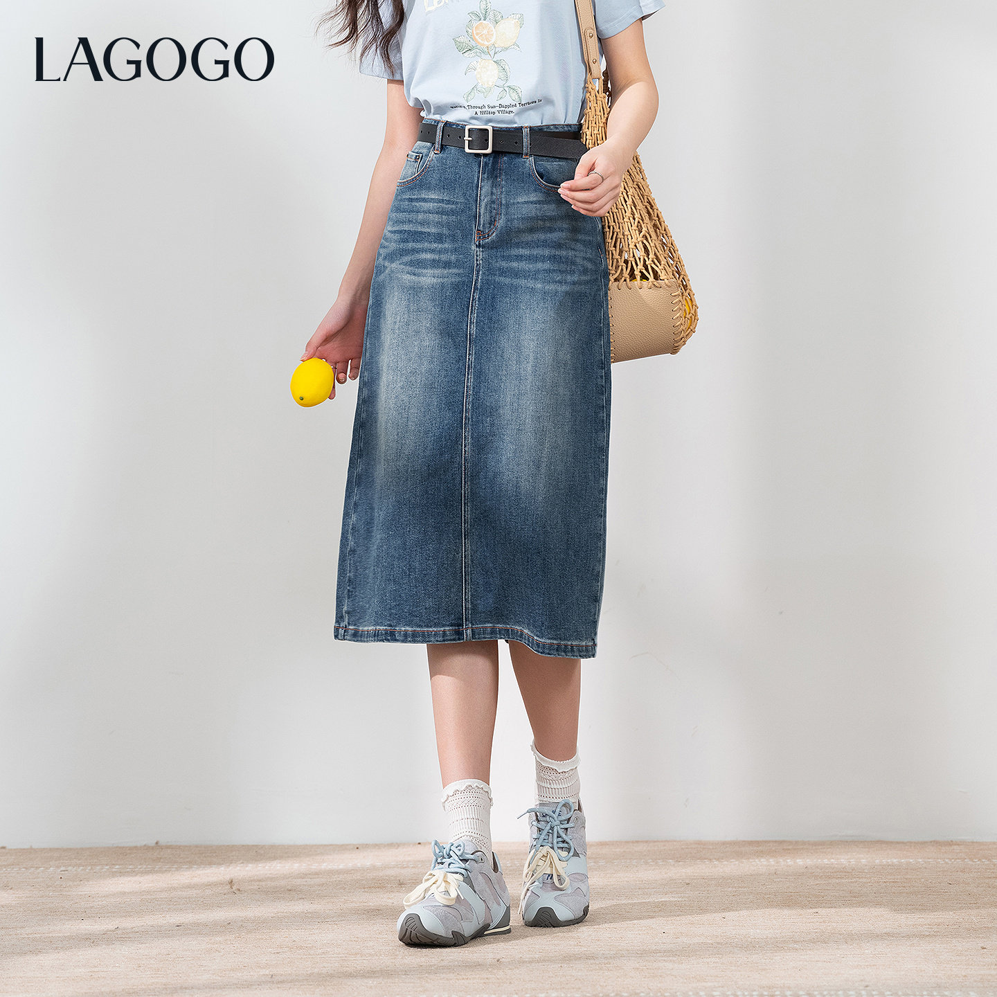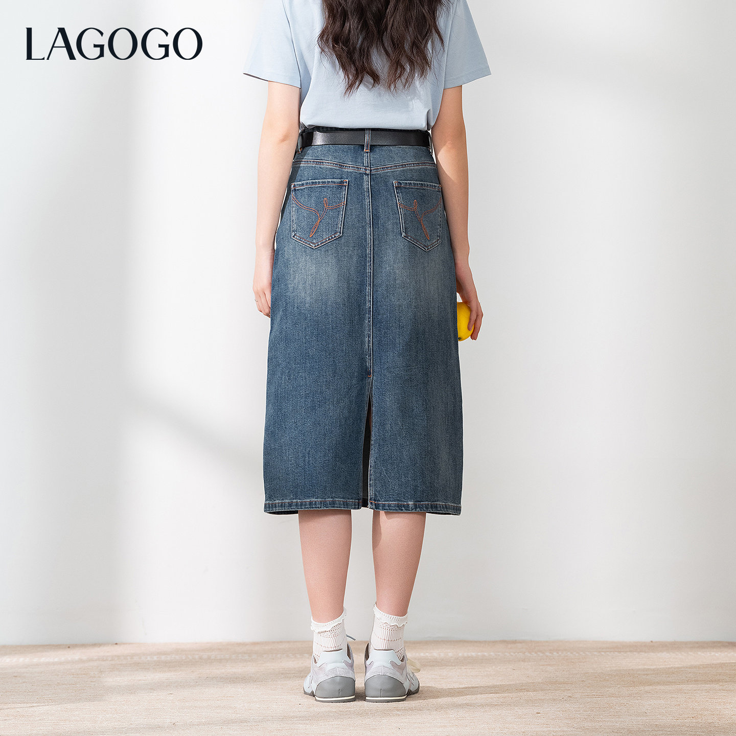 LAGOGO翘臀深蓝牛仔半身裙女拉谷谷2026夏新款复古蓝显瘦开衩裙子