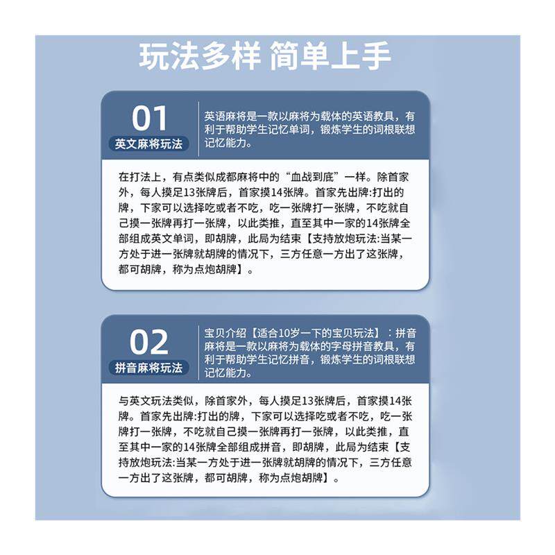 英文拼音字母麻将汉语声母韵母认读迷你麻将一年级儿童益智玩具牌