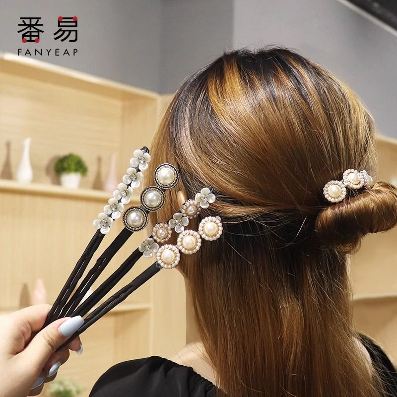 盘发器A1vn800-珍珠丸子头发卡复古法式懒人花瓣编发造型插发头