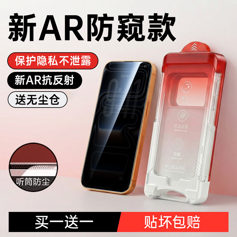 倍思无色防窥膜适用苹果iPhone17ProMax钢化膜16Pro无尘仓ip15手机贴膜AR抗反射360°防偷窥14防摔Air保护13