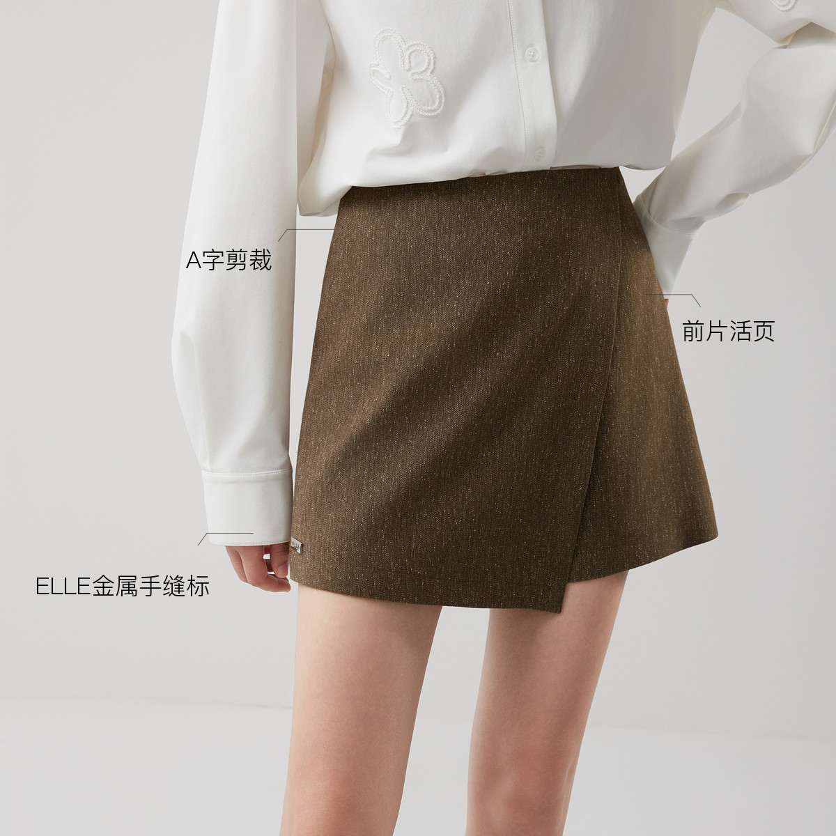 【商场同款】ELLE法式肌理设计感休闲短裤女2025秋季新款阔腿裤子