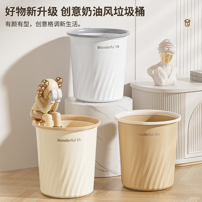 2025新款奶油风垃圾桶家用大号高颜值厨房客厅厕所简约卧室纸篓轻