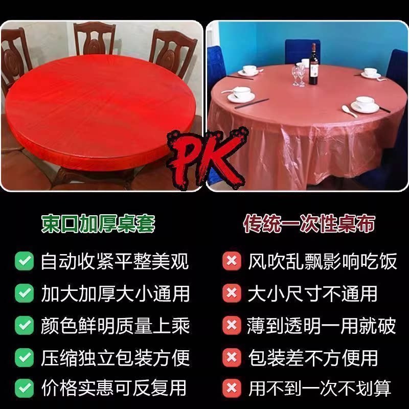 一次性桌布松紧束口家用加厚免洗红色饭店酒席婚庆套特厚圆桌餐桌