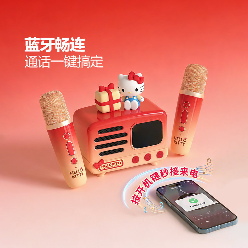 山姆代购亿觅kitty音响麦克风套装迷你便携家庭唱歌音响蓝牙K歌