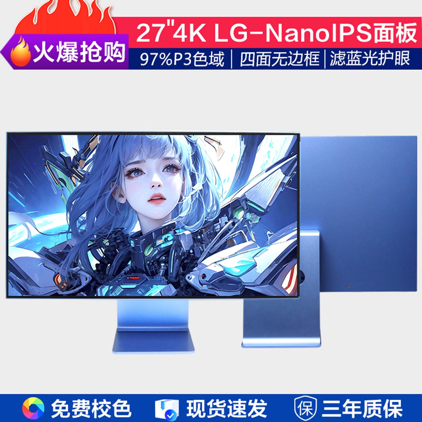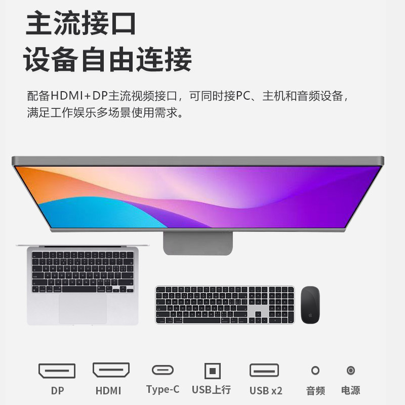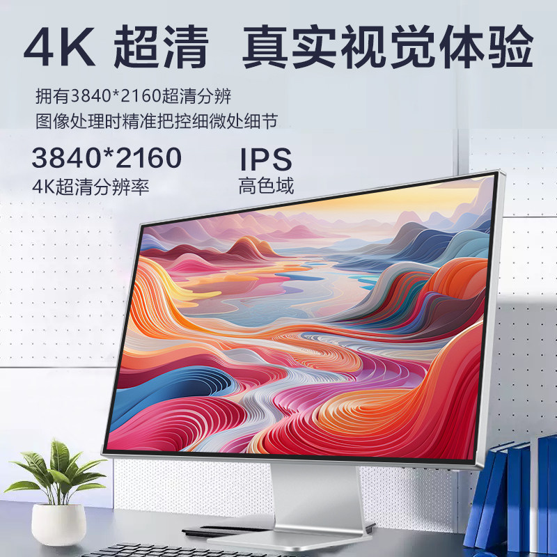 27英寸超薄显示器4K高清IPS竖屏设计无边框台式Typec外接电脑屏幕