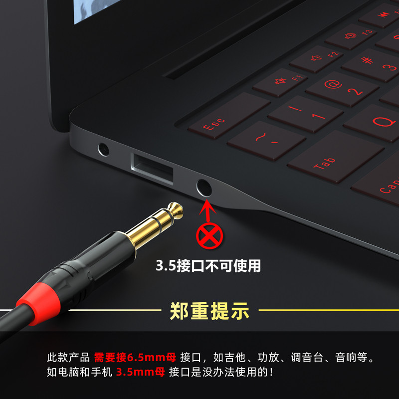 6.5mm音频线MIC双声道大三芯电吹管音响调音台功放话筒电吉他连接线10米15米20米30米40米50m小提琴TRS平衡线