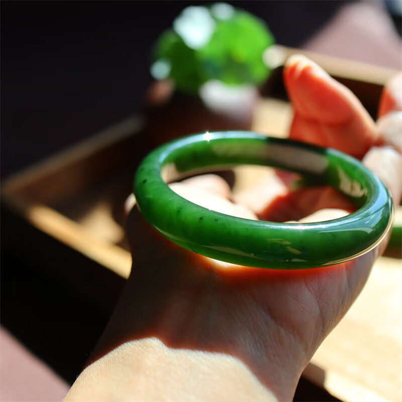 正品和田碧玉手镯女款乌兰海猕猴桃真玉石镯子送妈妈女友高档礼物