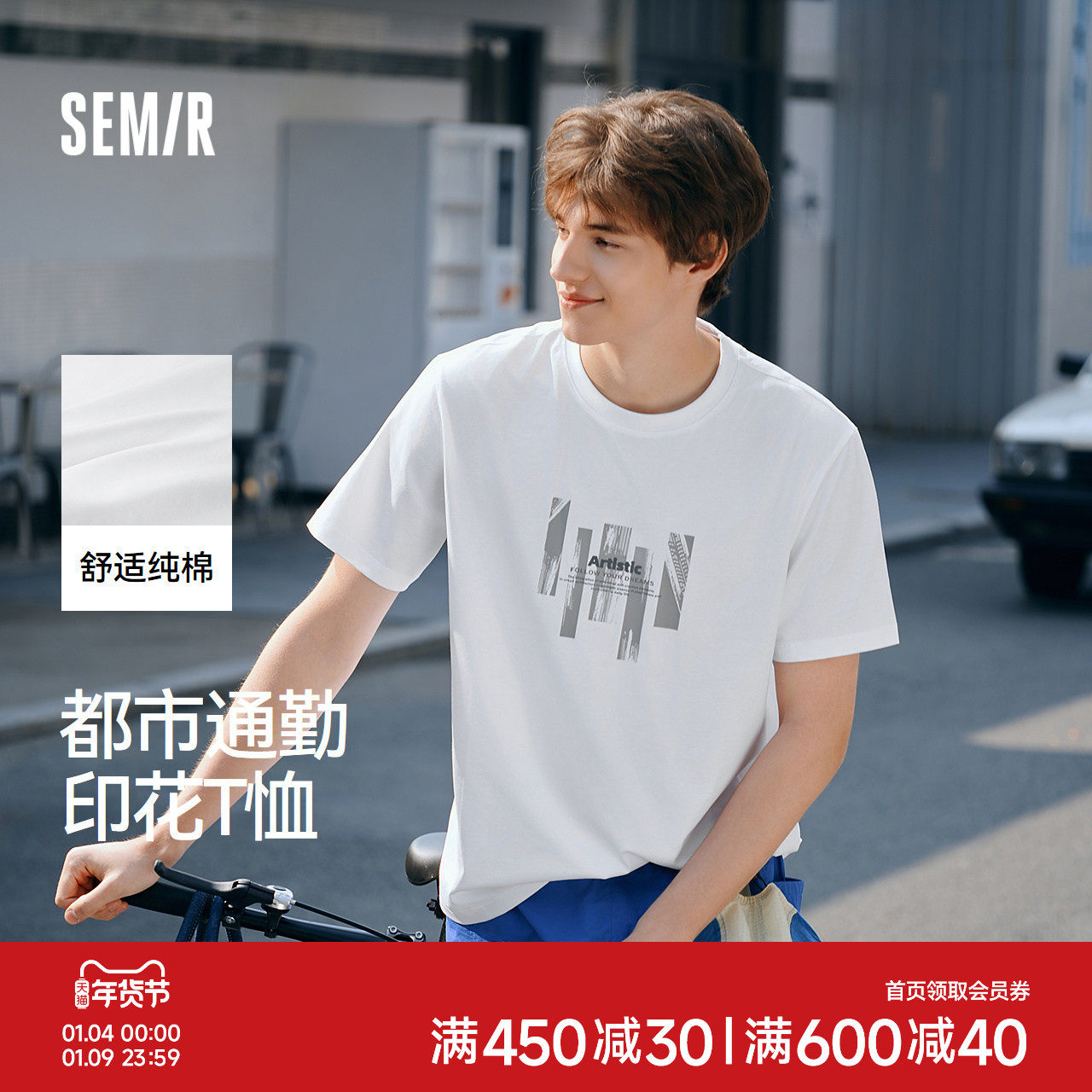 森柔棉液氮保型森马短袖T恤男纯棉夏装都市通勤印花正肩上衣时尚