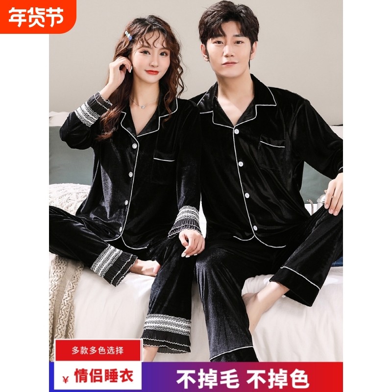 红豆情侣睡衣女秋冬金丝绒韩版加大码200斤宽松男女款家居服春秋