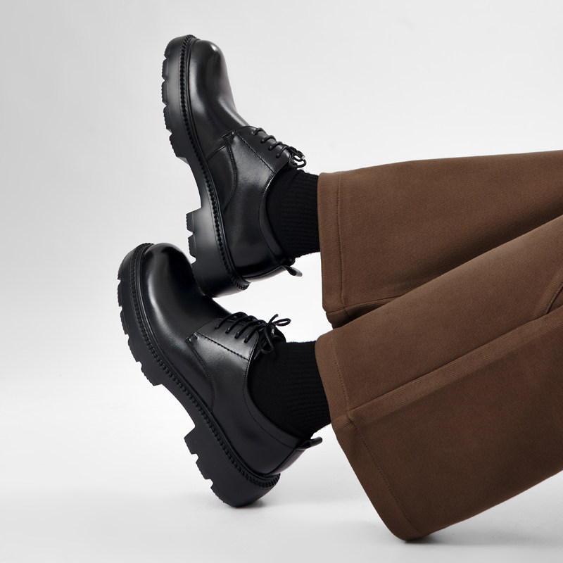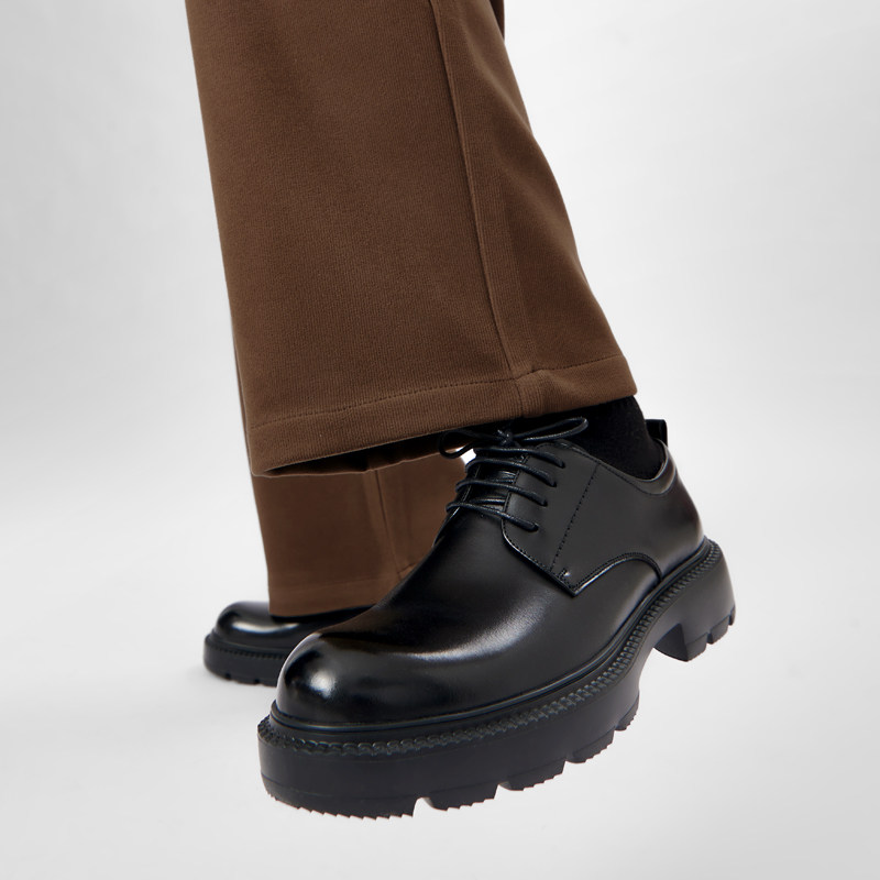 骆驼男鞋2025冬季时尚黑色增高光面正装结婚大头系带低帮皮鞋