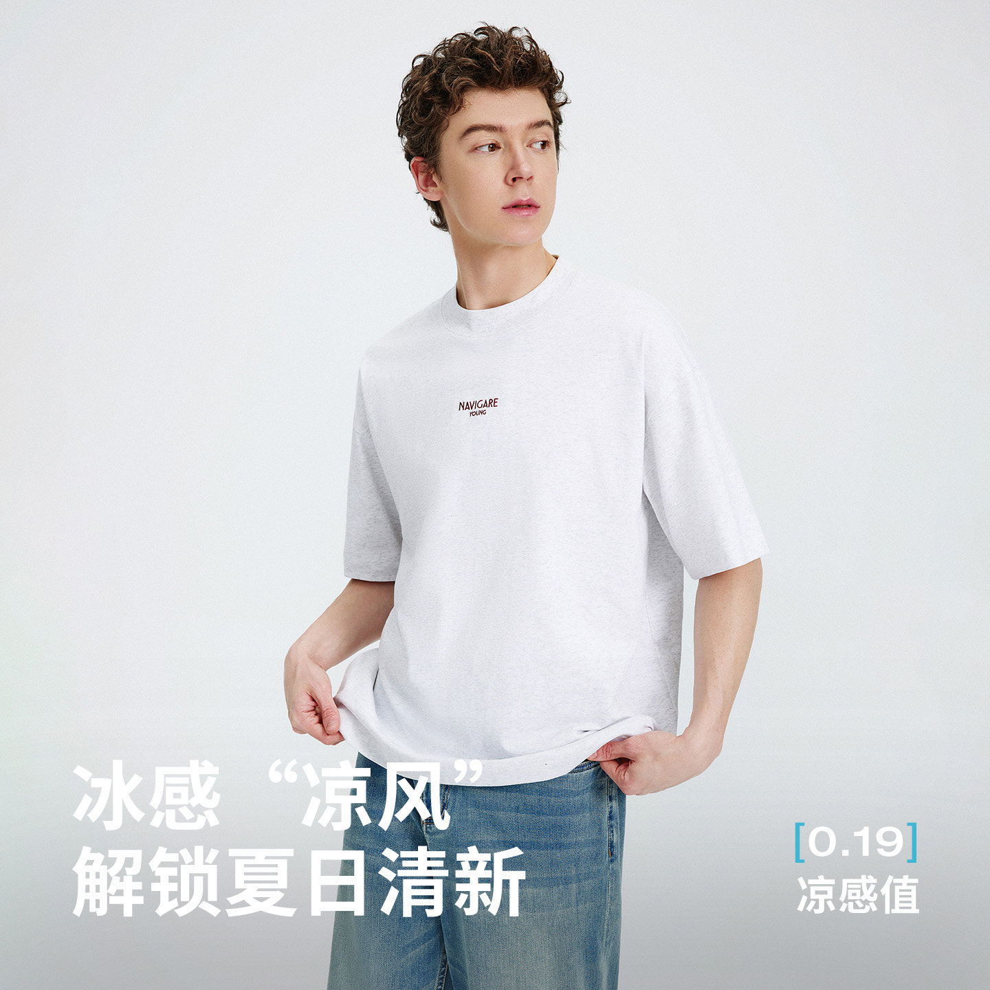 [凉感]Navigare小帆船圆领重磅短袖T恤男2026夏季休闲内搭体恤衫