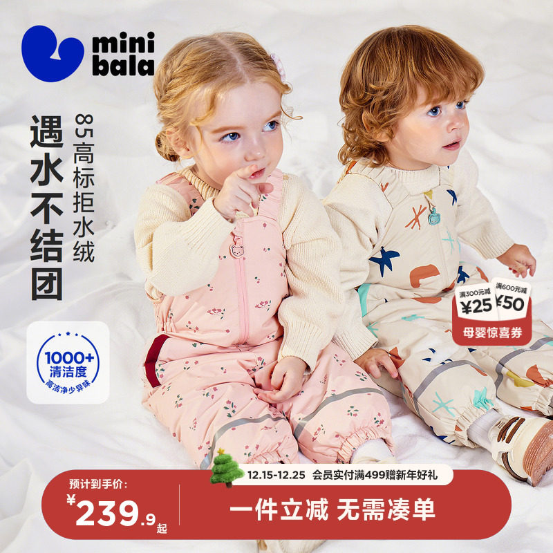 【三防】迷你巴拉巴拉男女童三防羽绒裤冬季新款背带长裤加厚保暖