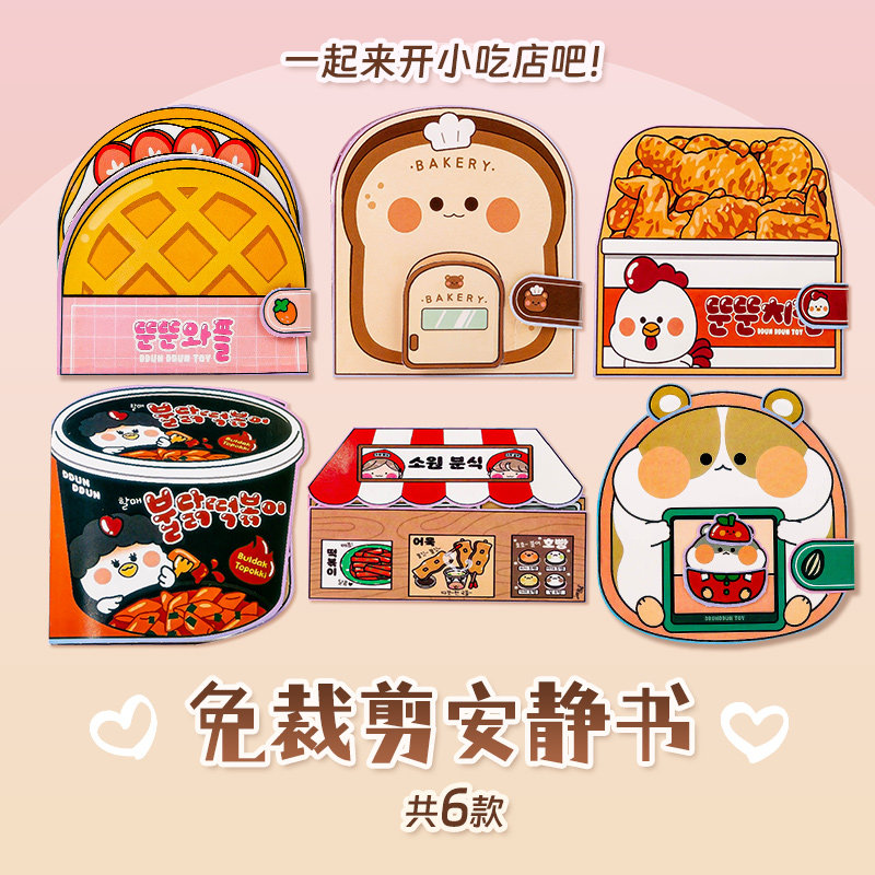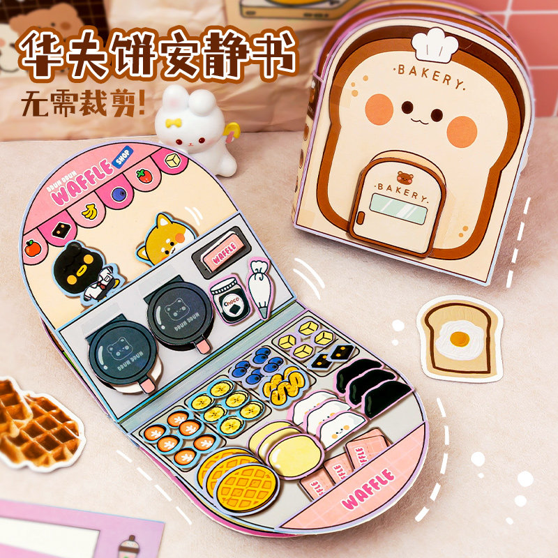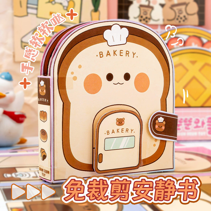 免裁剪版新款安静书全套女孩儿童diy立体书材料换装贴纸男孩男生的卡通安静书不用剪宠物小仓鼠面包店豆豆本