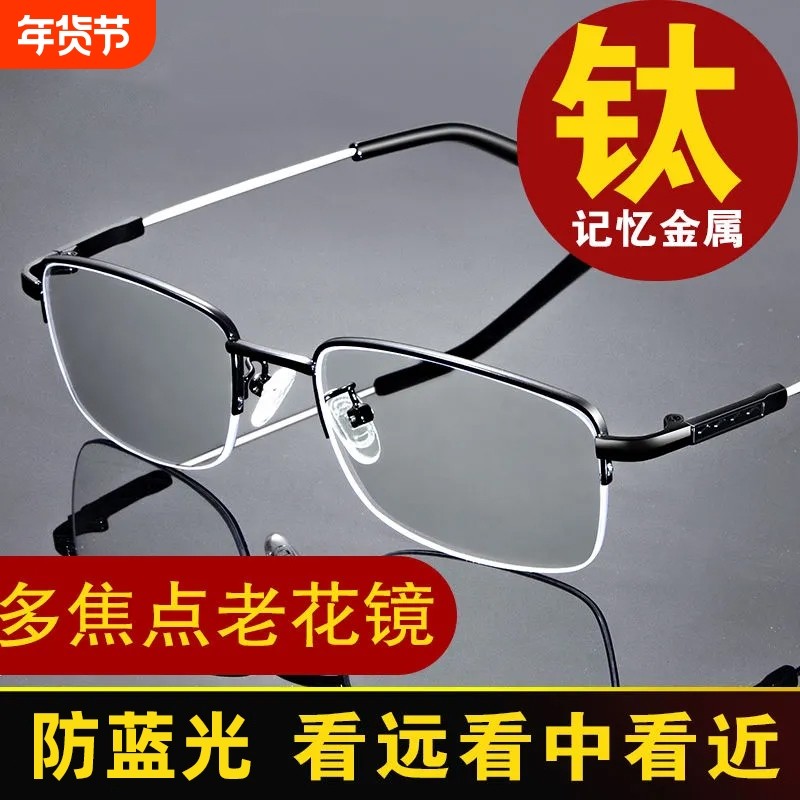 远近两用老花镜男中老年人智能多焦点老花眼镜防蓝光记忆钛花镜女