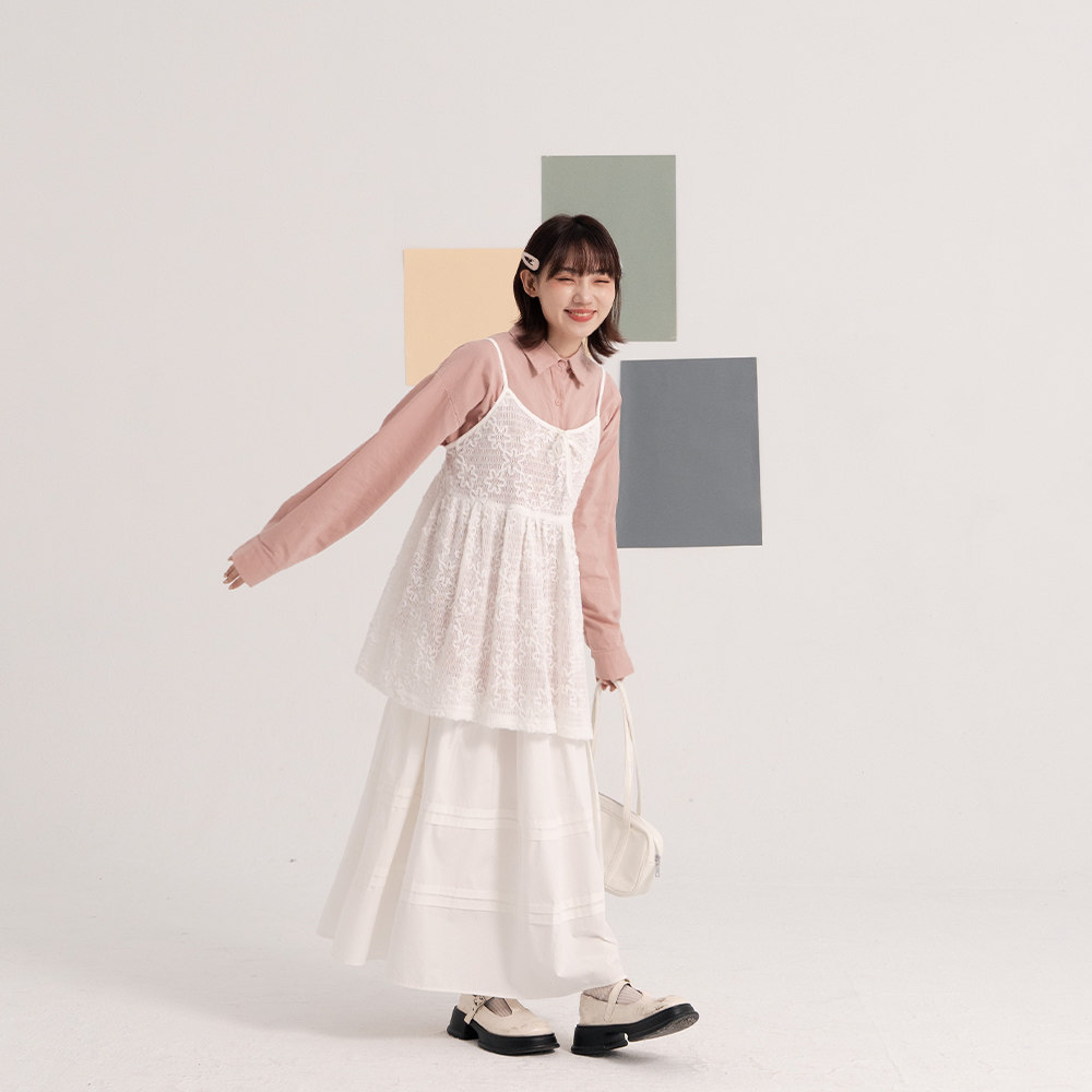 半练带胸垫裙子吊带裙白色连衣裙秋季流行长裙小个子黑色背心裙女