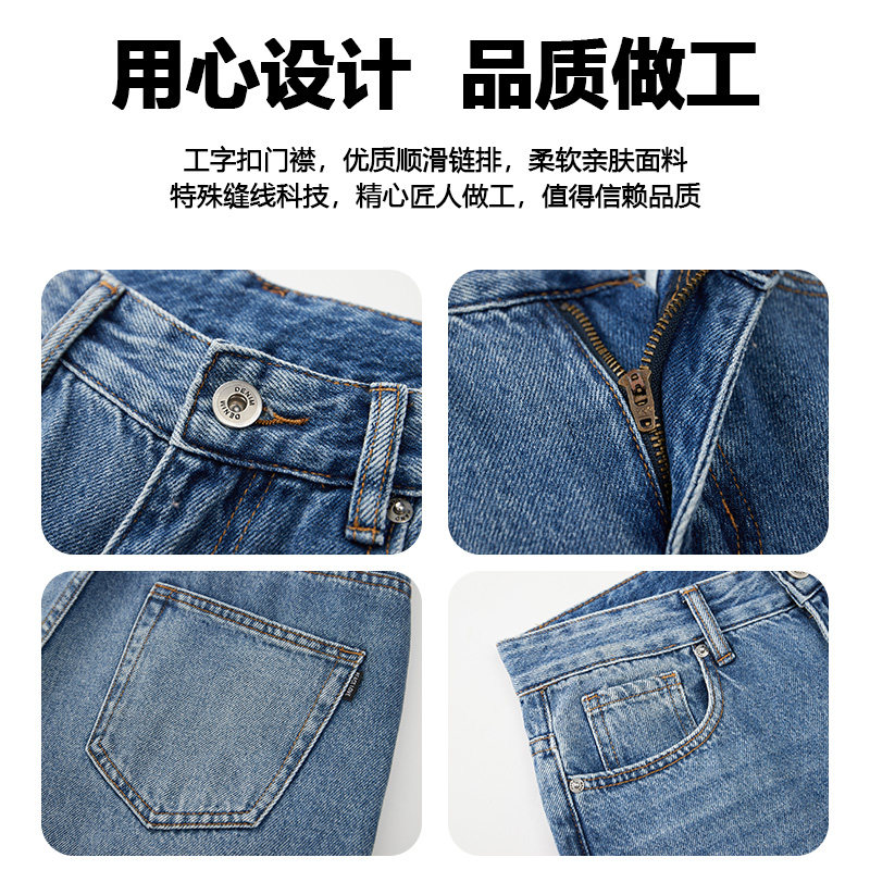 森柔牛仔森马牛仔裤男裤子新款中蓝潮宽松直筒裤子男复古百搭猫须