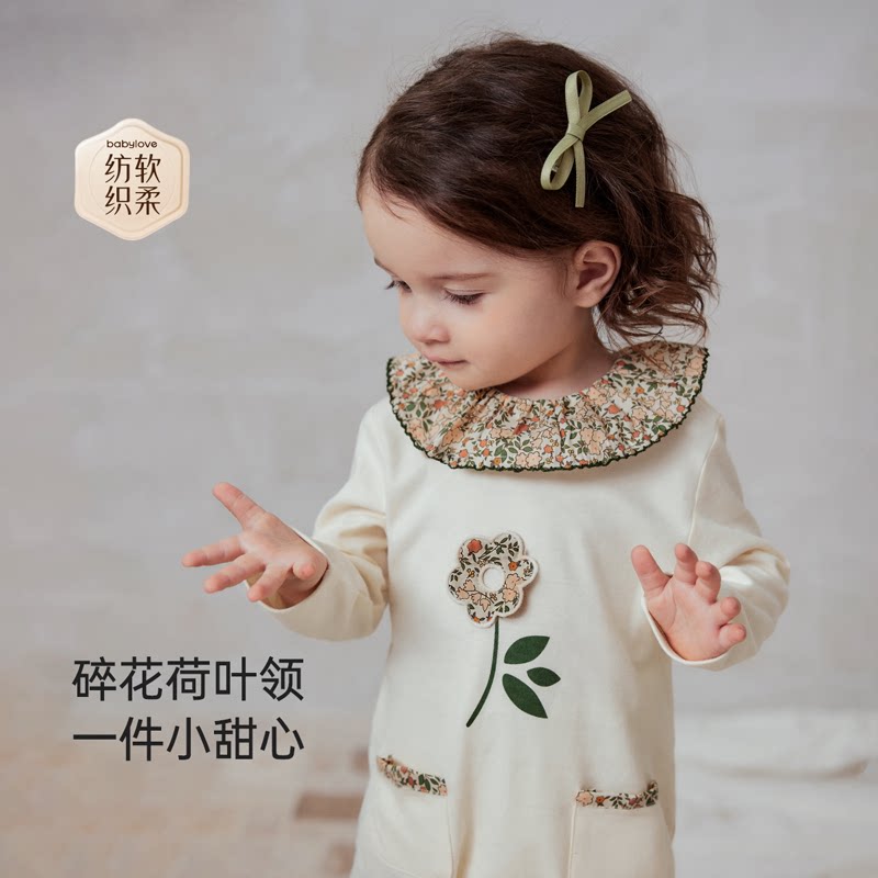 babylove【安心柔】婴儿连体衣春秋哈衣纯棉女宝宝衣服碎花童话