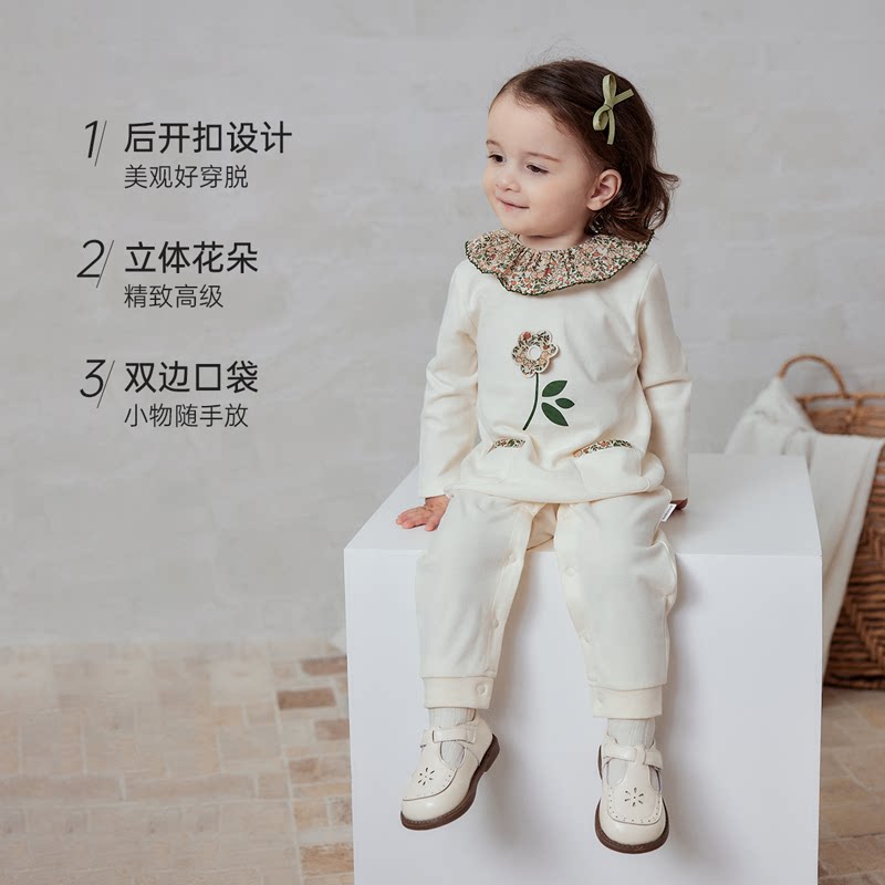 babycare冬季保暖山茶花连体衣宝宝包屁衣新生儿爬服外出婴儿衣服