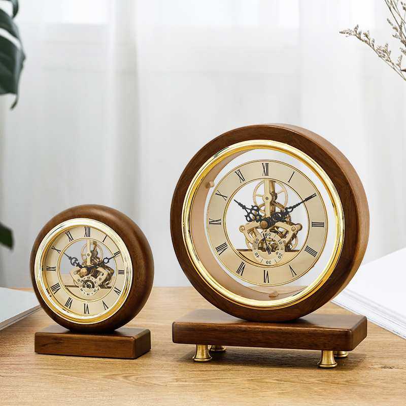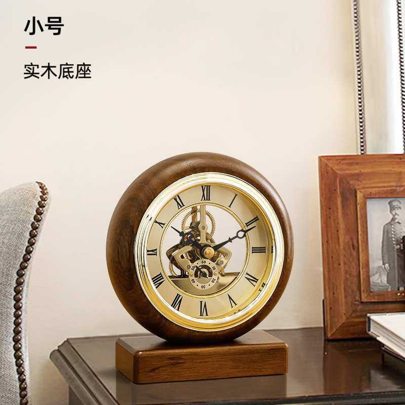 新中式胡桃实木座钟现代简约台钟表客厅家用桌面摆件书桌台式时钟