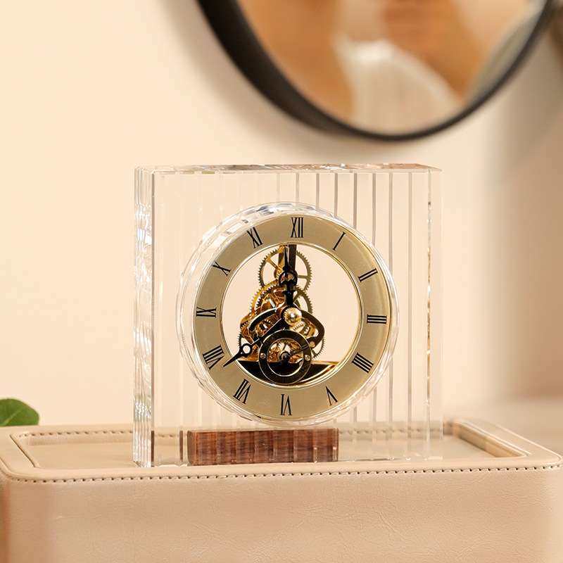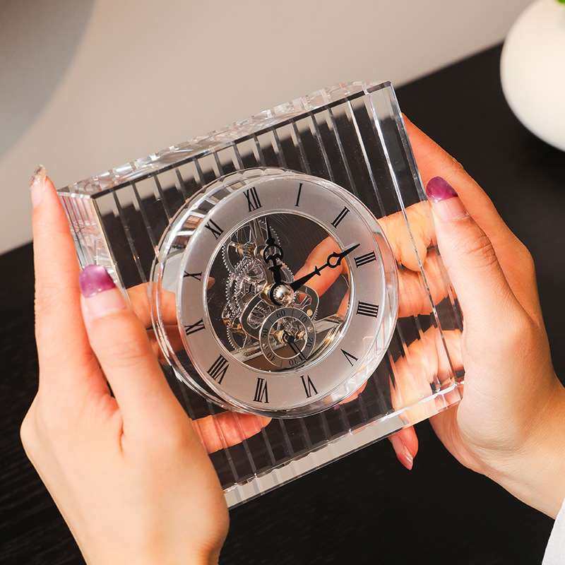轻奢K9水晶座钟摆件酒柜办公室桌面钟表卧室床头柜台钟摆放式