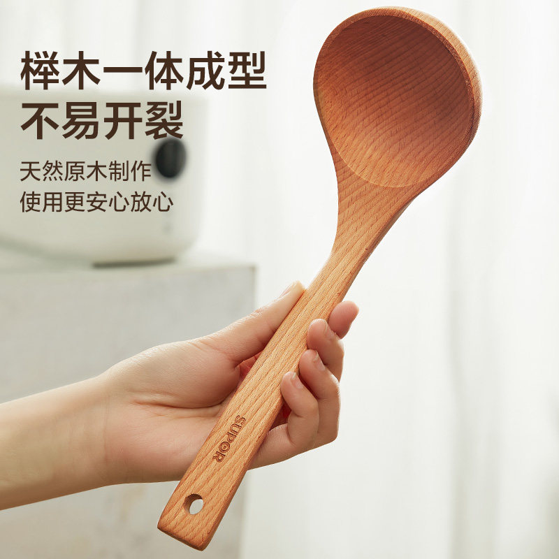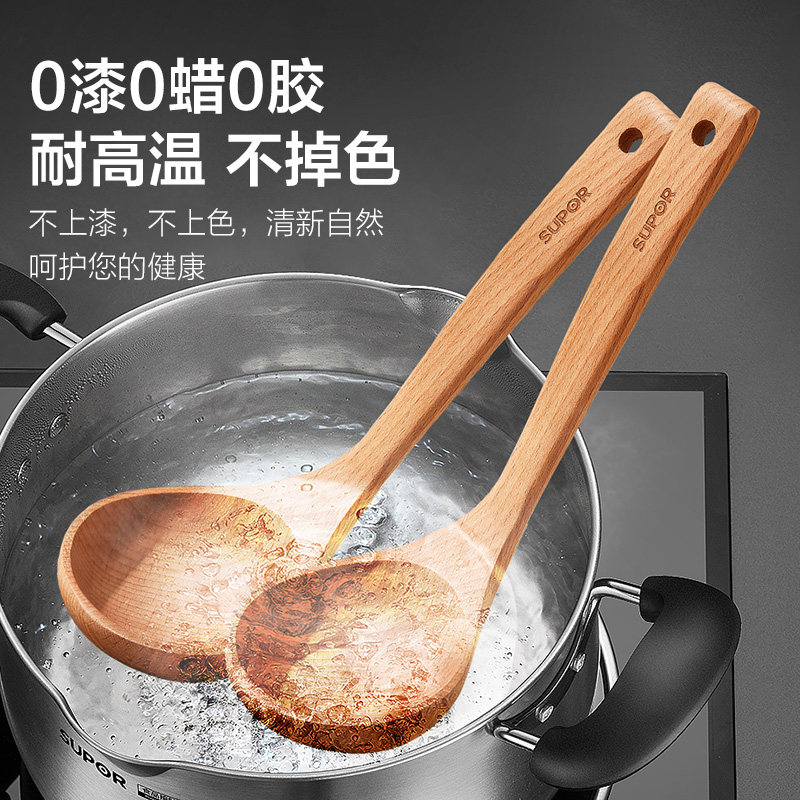 苏泊尔汤勺子长柄家用实木勺大号盛汤粥勺火锅勺长把稀饭汤羹勺子