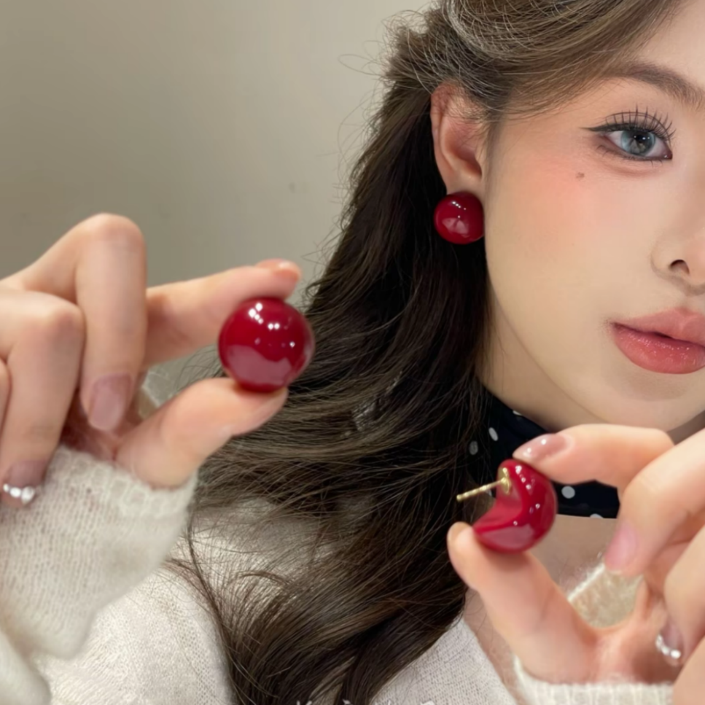 四叶草耳钉植绒红色马年女设计轻奢高级感耳饰新年耳环镶钻爱心