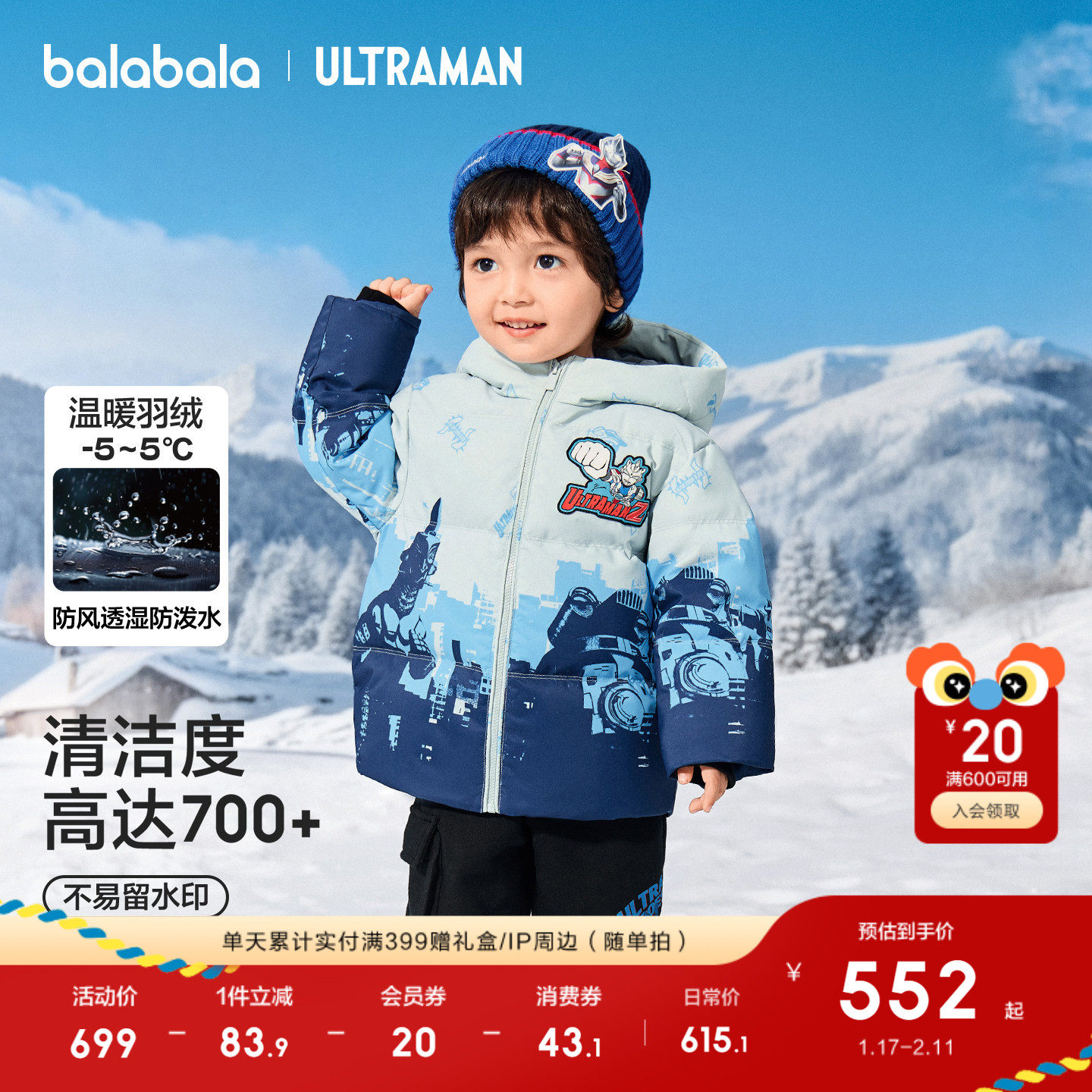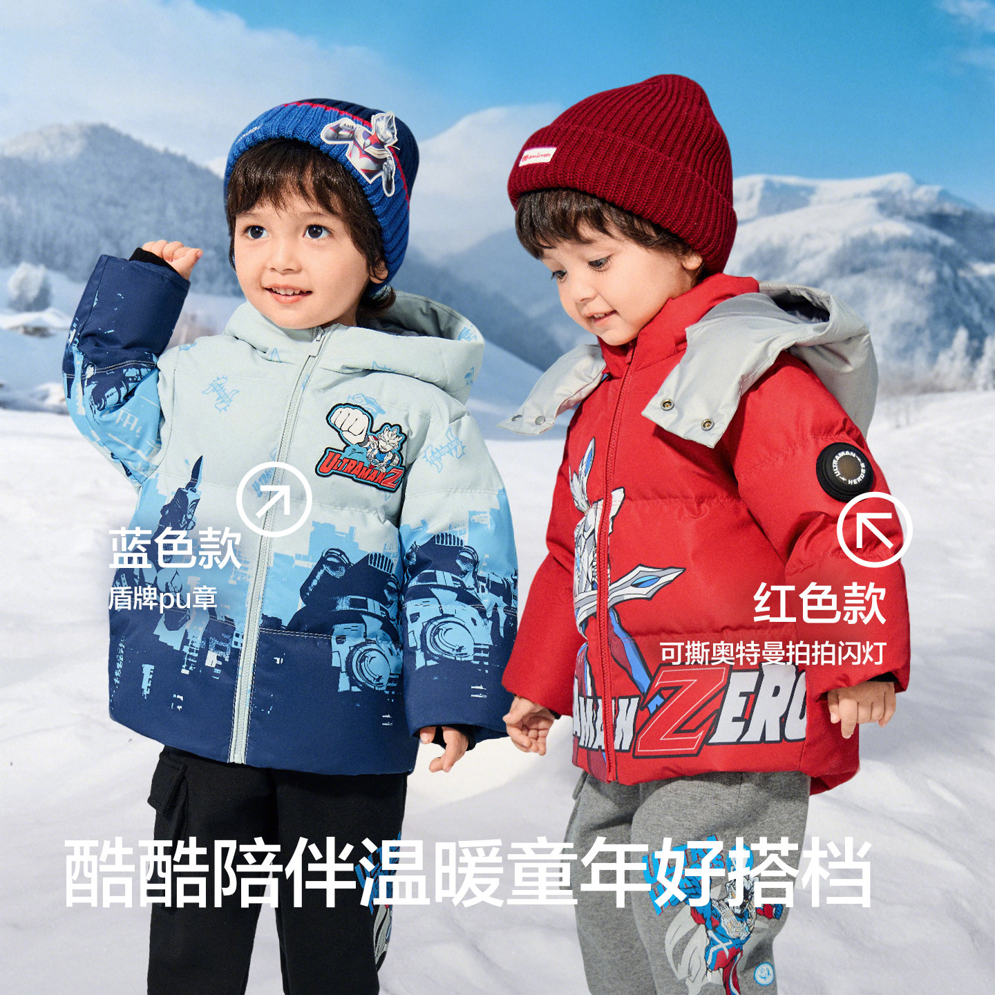 【奥特曼IP】巴拉巴拉儿童羽绒服男童2025年冬装外套红色拜年服厚