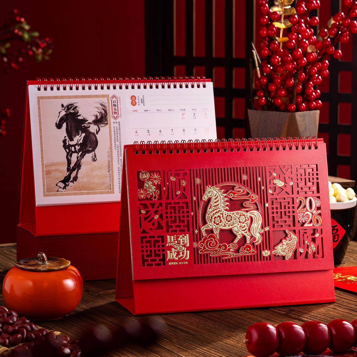 台历2026年新款镂空剪纸日历大号办公桌摆件企业礼品日历国风马年新款创意新年月历专版印刷广告