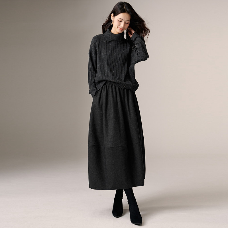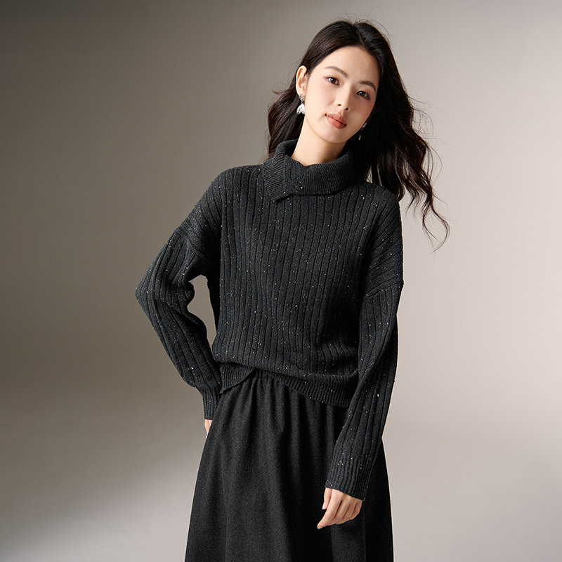 晚白2026年春新款时尚高领套头毛衣柔软舒适宽松大码显瘦针织衫女