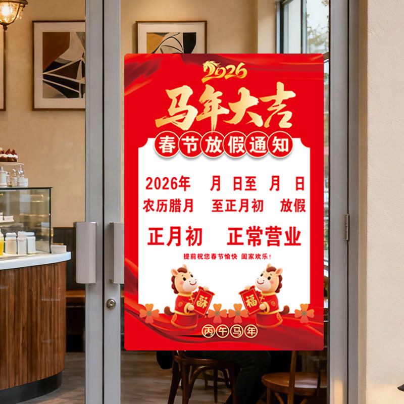 2026马年春节放假通知海报新年公司单位店铺饭店餐馆公告贴纸贴画