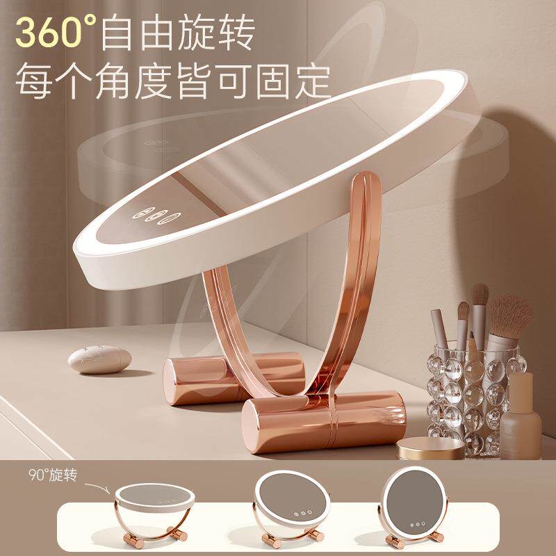 化妆镜台式桌面可旋转梳妆镜子奶油风智能带灯高级女生主卧室台镜