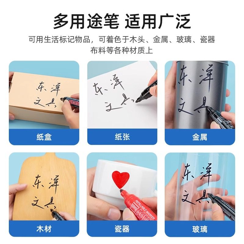 TOYO东洋MK138油性记号笔可加墨水加粗单头快干防水不掉色箱头标记快递物流记号笔马克笔光盘笔签到笔黑蓝红