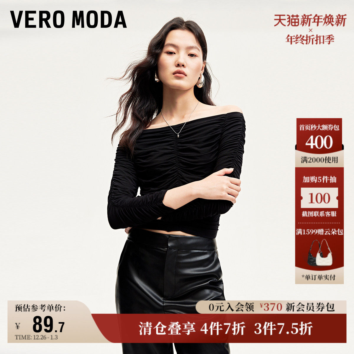 Vero Moda奥莱上衣女秋冬新款修身抽褶方领时尚通勤气质显瘦流行