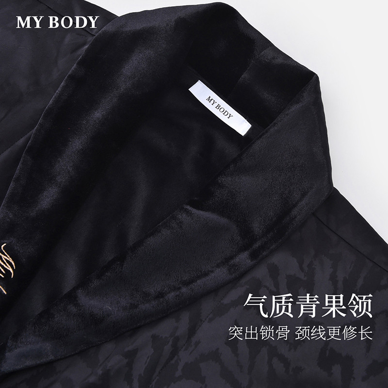 商场同款MYBODY2025冬季新款男士睡衣气质青果领轻奢开襟浴袍睡袍