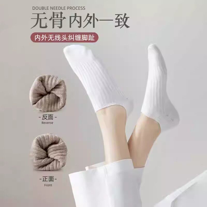 日本MUll袜子女夏季薄款隐形防滑不掉跟纯色浅口百搭全棉白色船袜
