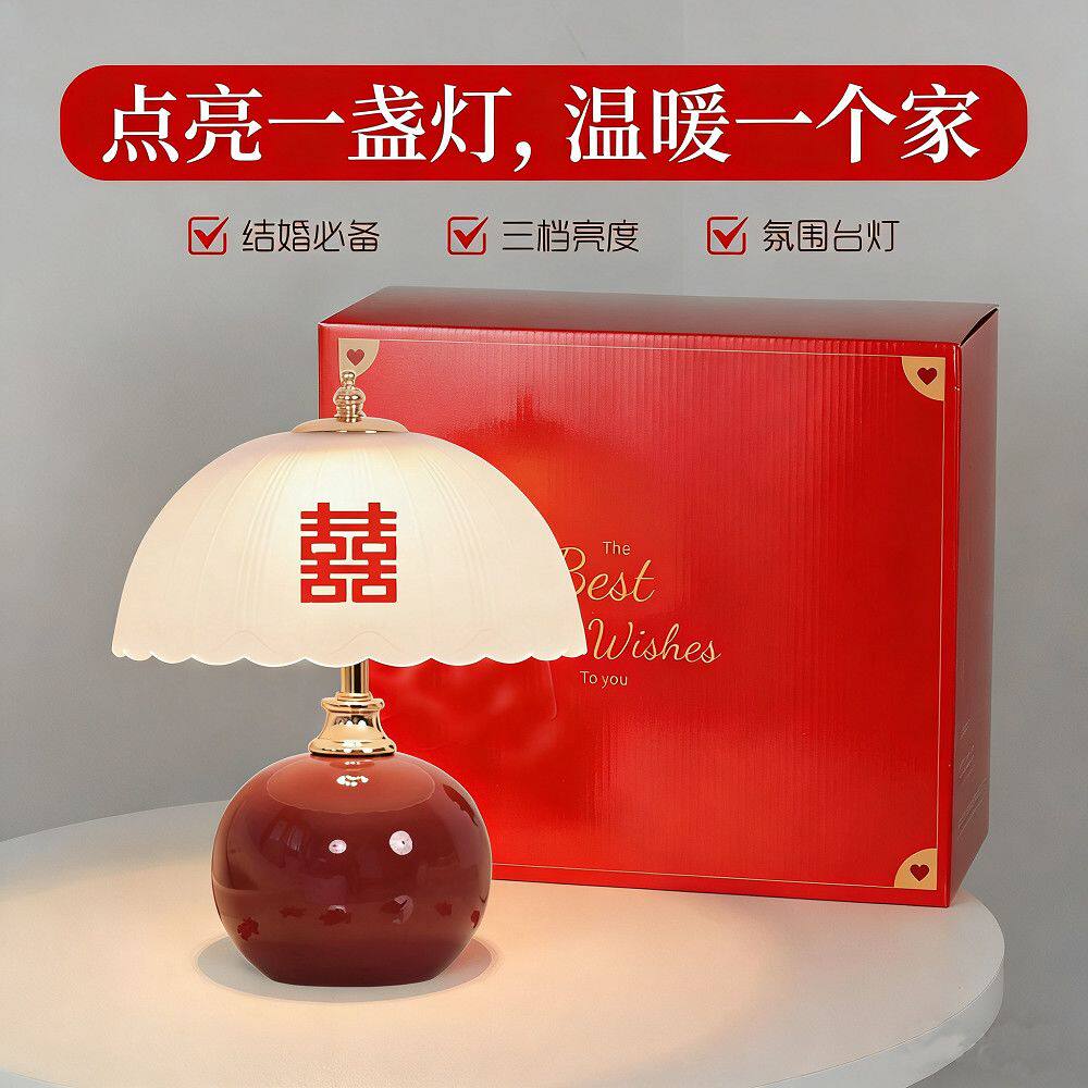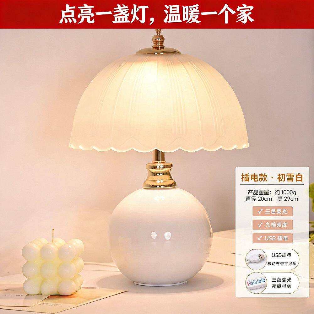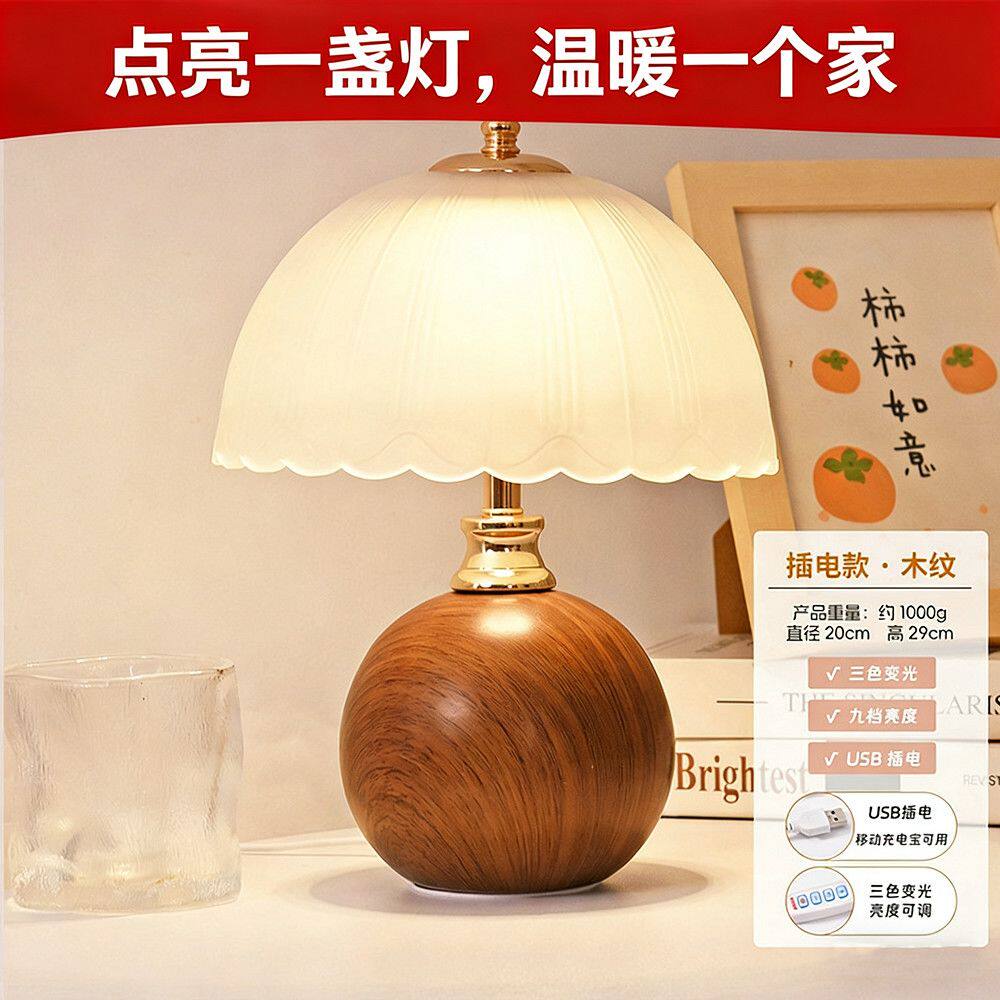 奶油风创意高级感轻奢台灯卧室2025温馨结婚氛围小夜灯酒吧客厅
