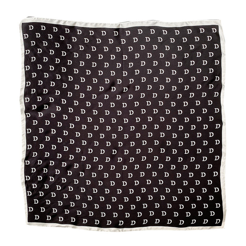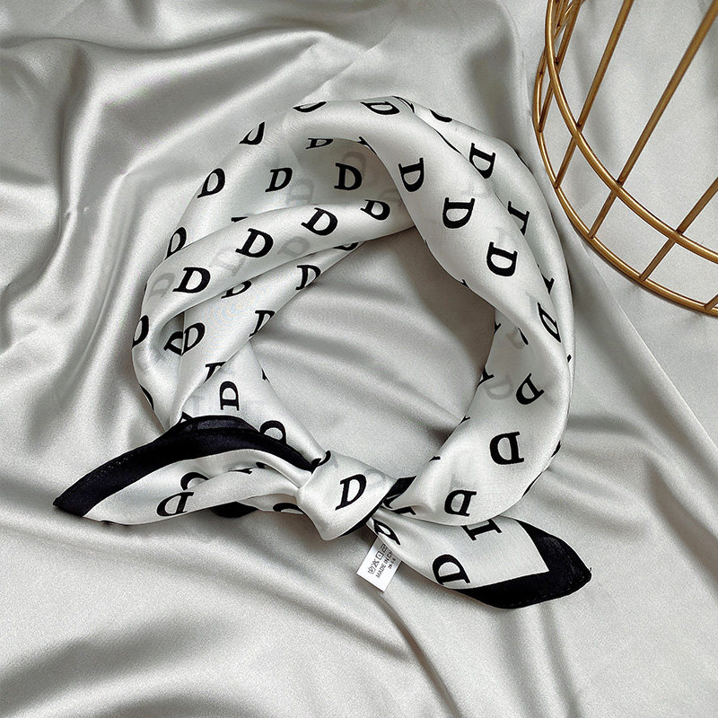 黑白简约风 100%桑蚕丝D字母真丝小方巾韩国百搭气质通勤小领巾女