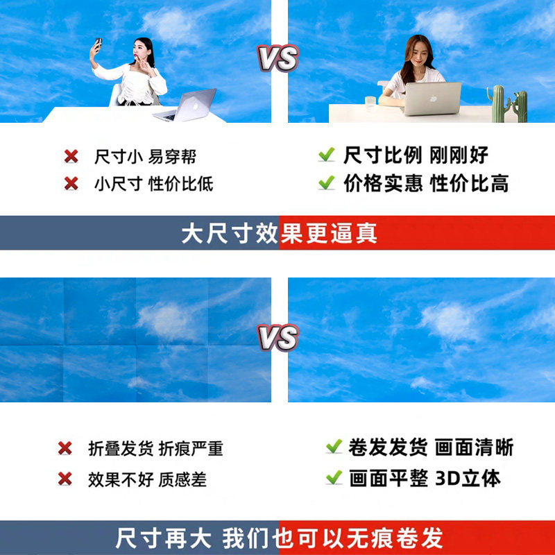 风景2025新款蓝天白云直播背景布3d立体背景墙主播网红儿童不反光摄影室内挂布户外云彩拍照背景纸写真装饰