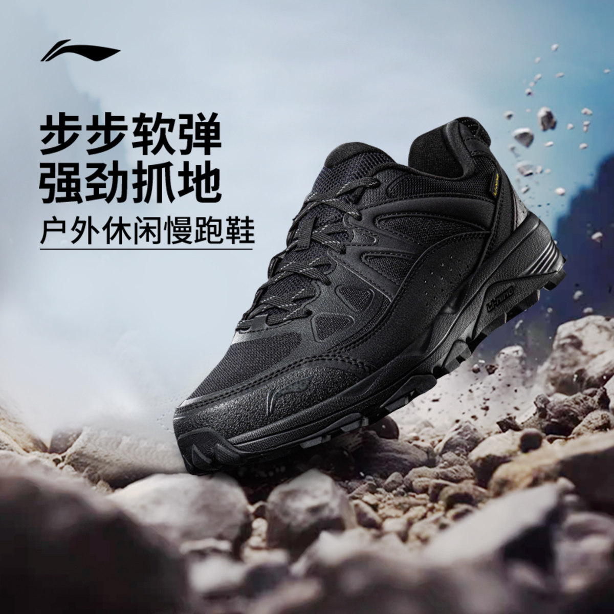 李宁高达丨跑步鞋男鞋春季新款户外登山徒步鞋减震黑色通勤运动鞋