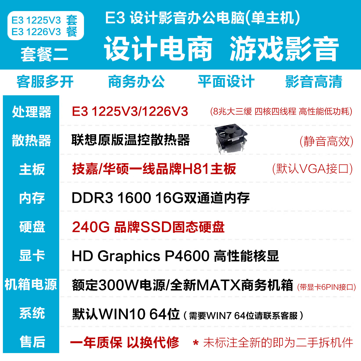 二手电脑主机DIY组装机核显酷睿i5 i3电商高清家用设计办公台式机