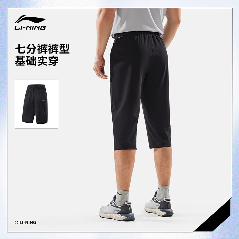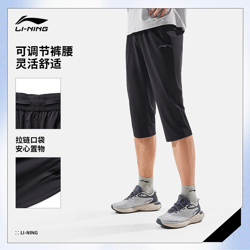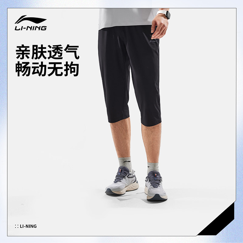 李宁健身系列男子直筒冰感舒适防晒针织运动七分裤