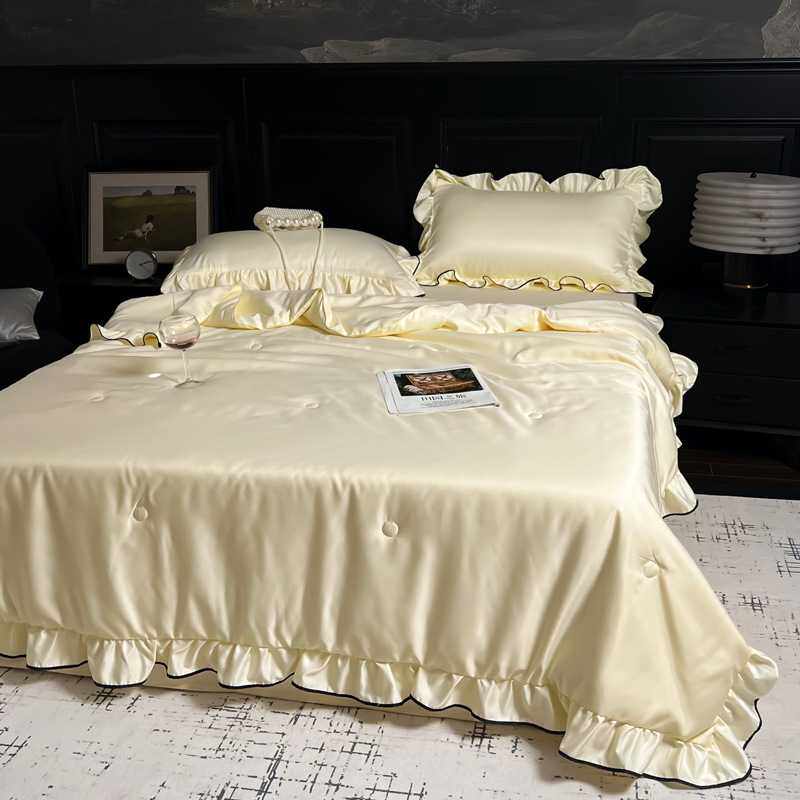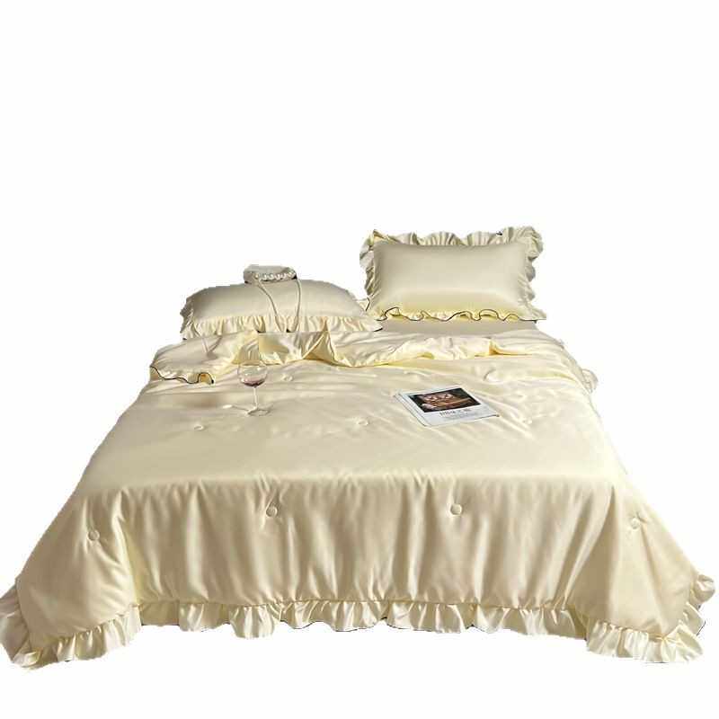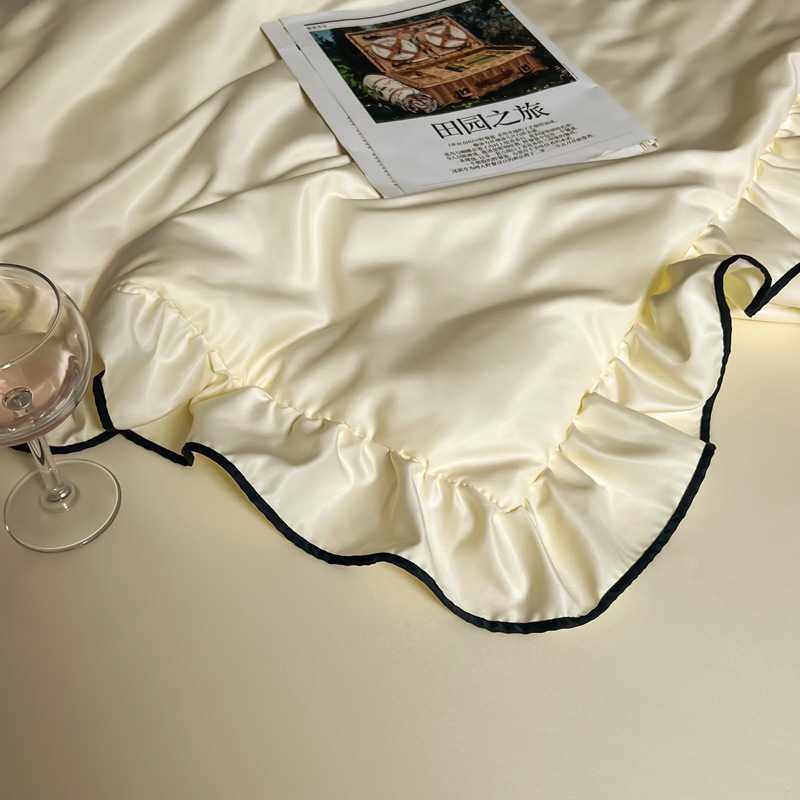 跨境新款花边水洗真丝夏被四件套裸睡亲肤丝滑被套凉感丝床单轻奢