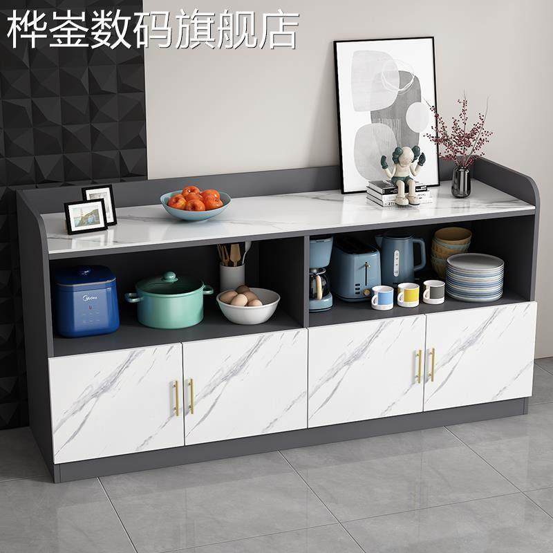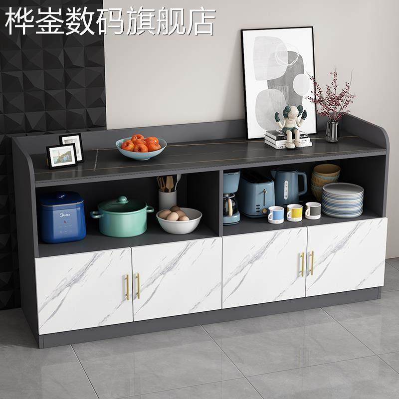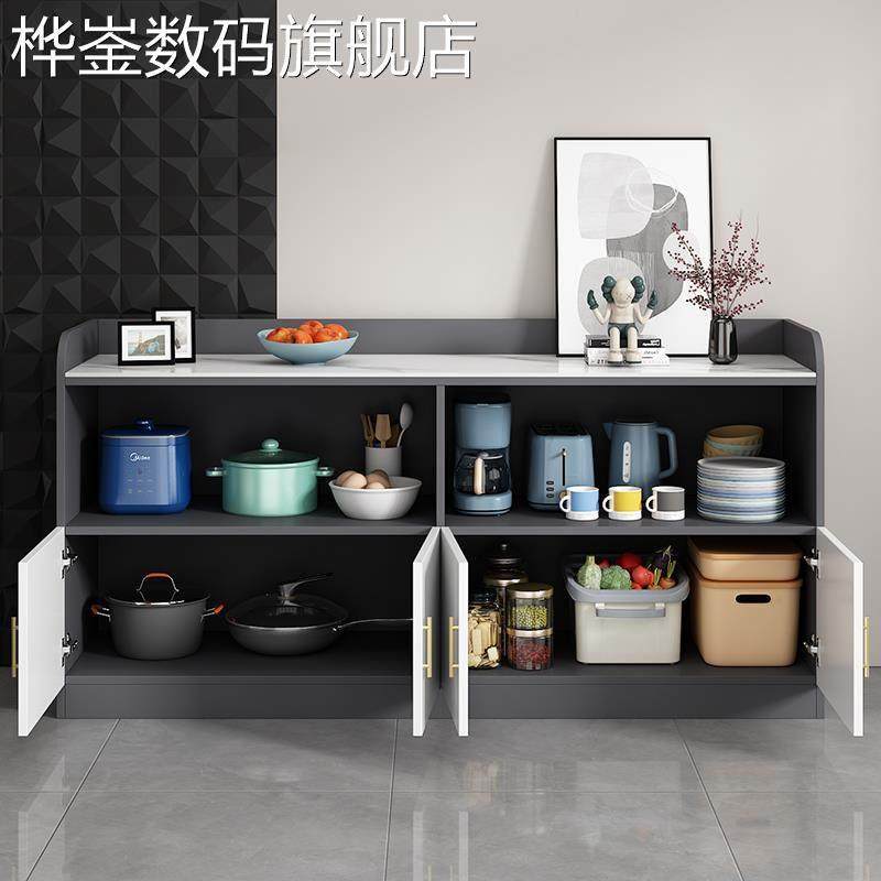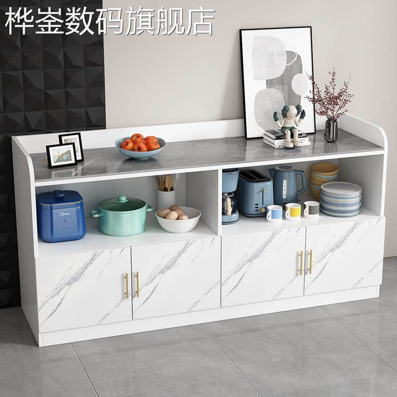 麦比梵实木餐边柜厨房岩板切菜桌柜子微波炉烤箱储物柜多功能置物收纳柜床笠拉车