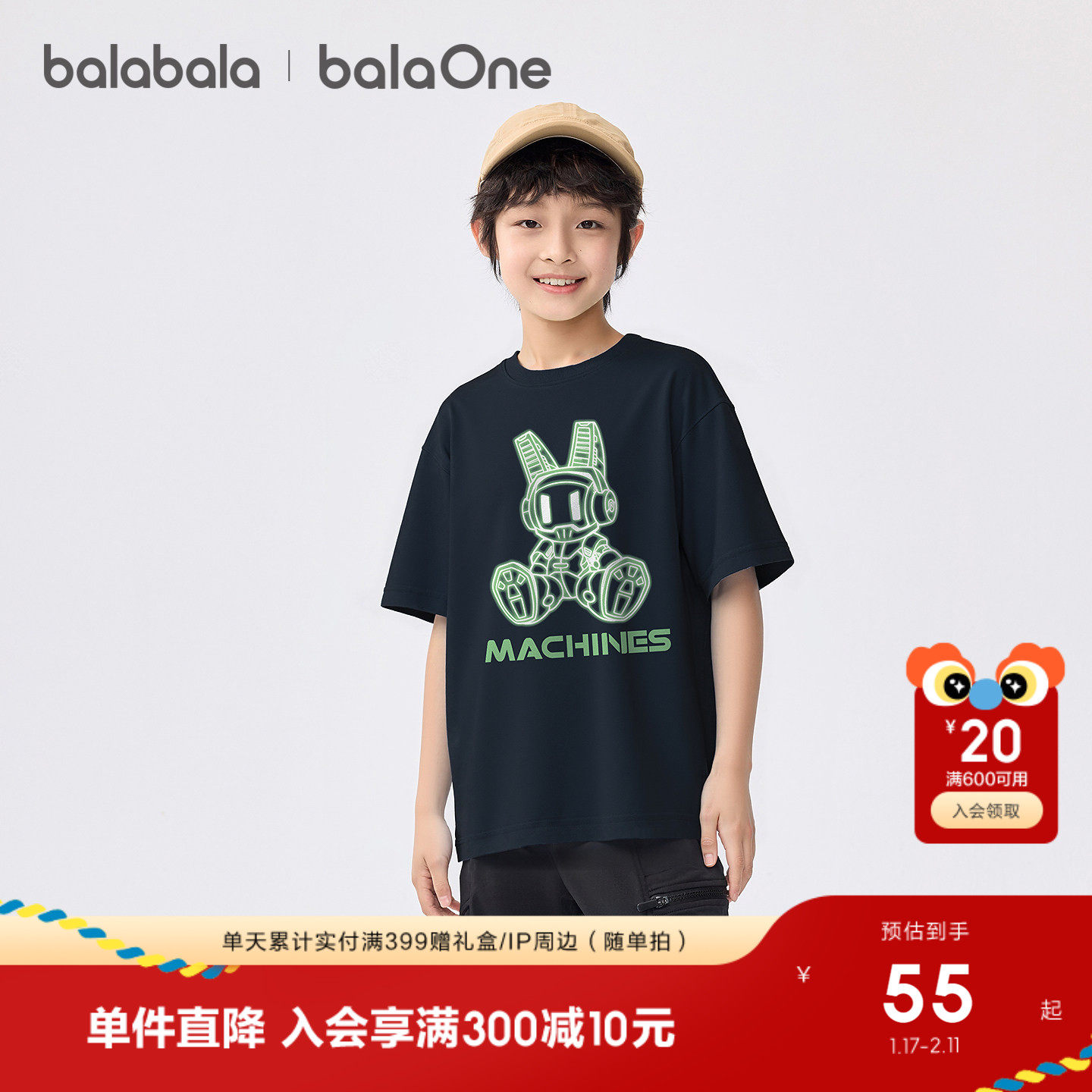 巴拉巴拉男童短袖t恤儿童2026新款夏装潮酷印花休闲上衣吸湿速干t