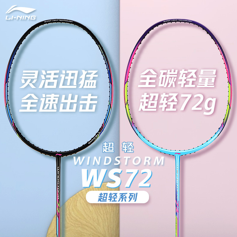 李宁羽毛球拍风暴WS72全碳素高颜值女生拍专业训练控球型进阶单拍